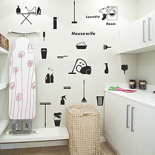 Housewife Laundry Room Wall Decal - Removable PVC Wall Sticker for Black