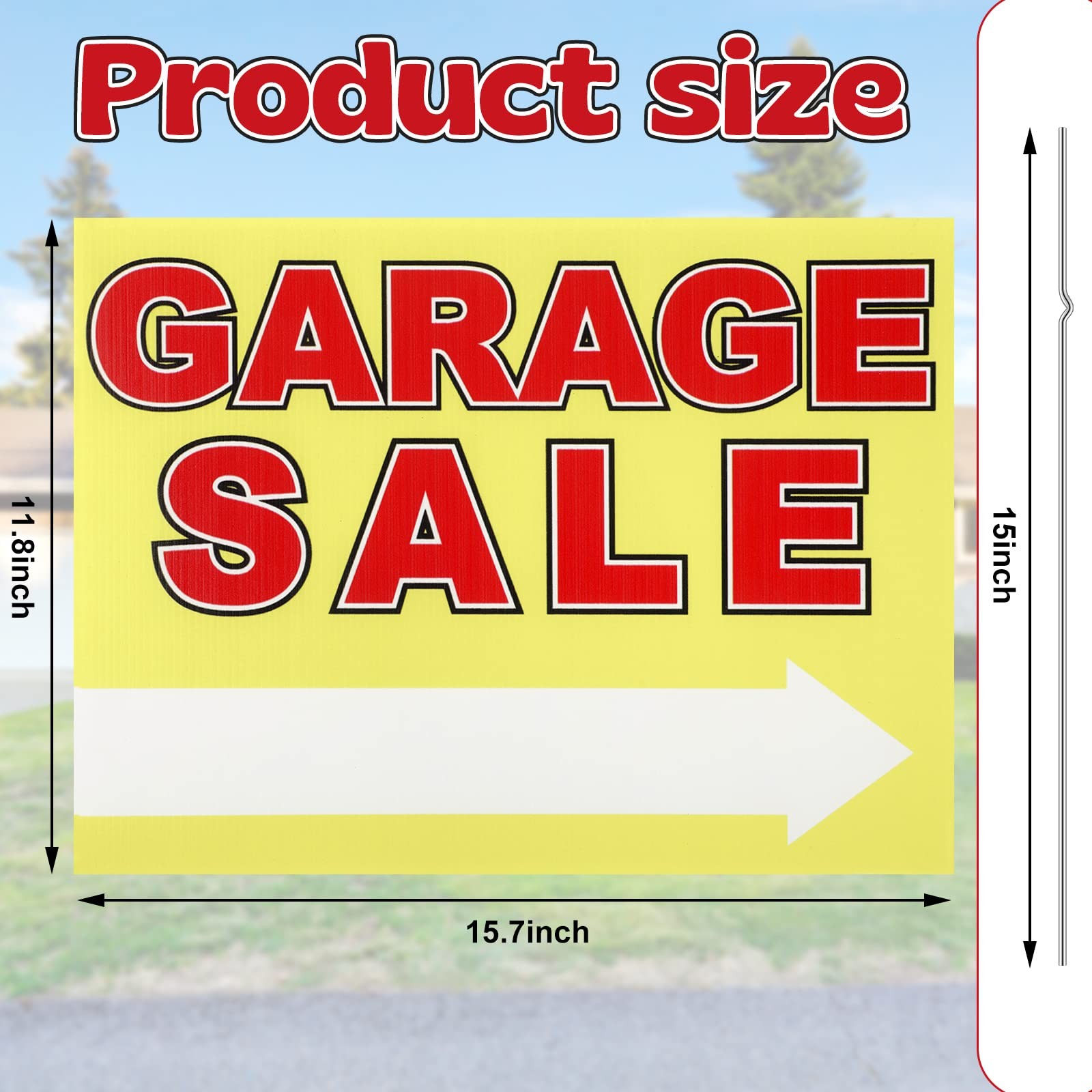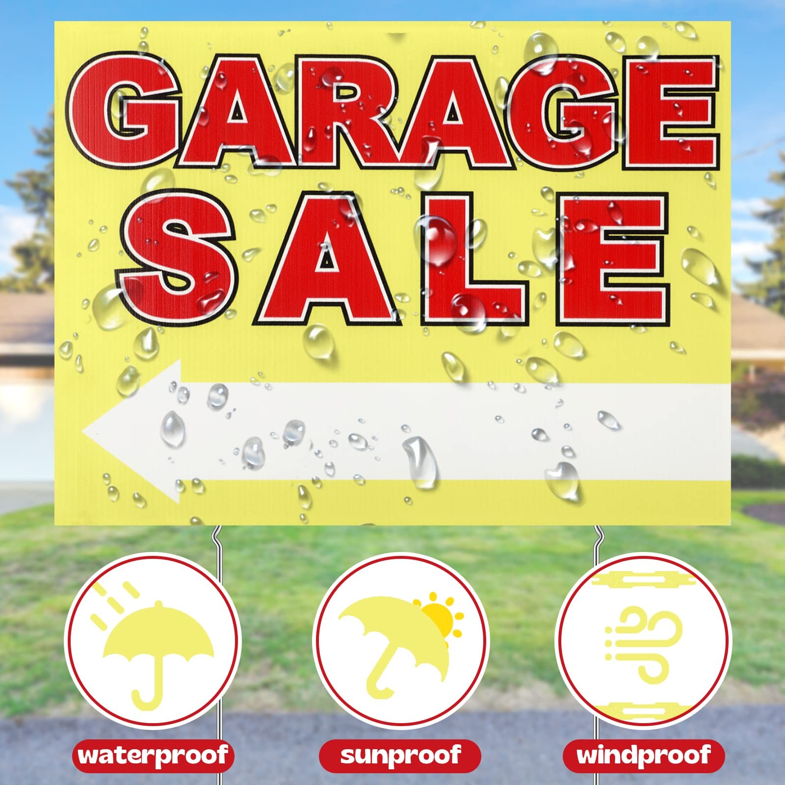 3 Pcs Garage Sale Sign with Metal Stakes 12 x 16 Inch Double Sided Corrugated...