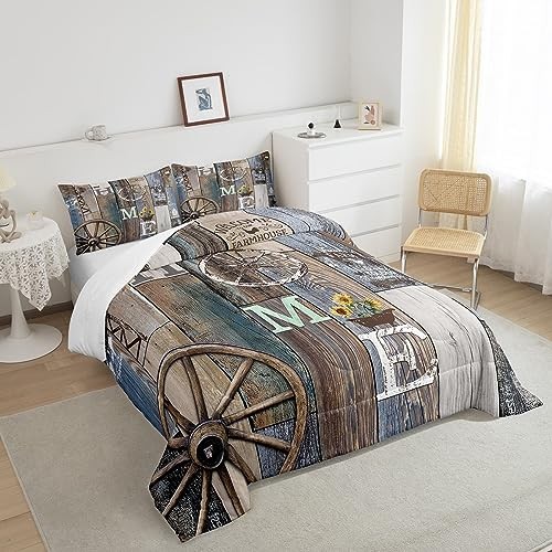 Rustic Farmhouse Quilt Set For Men Western Country Cabin Bedding King Multi 09