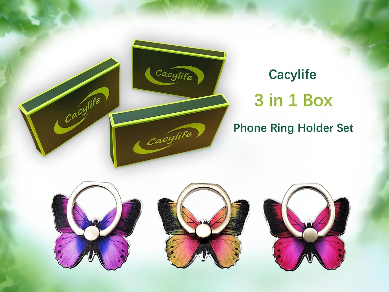 3 Pack of Butterfly Phone Ring Holder Set for iPhone,Cute Pink,Purple,Yellow