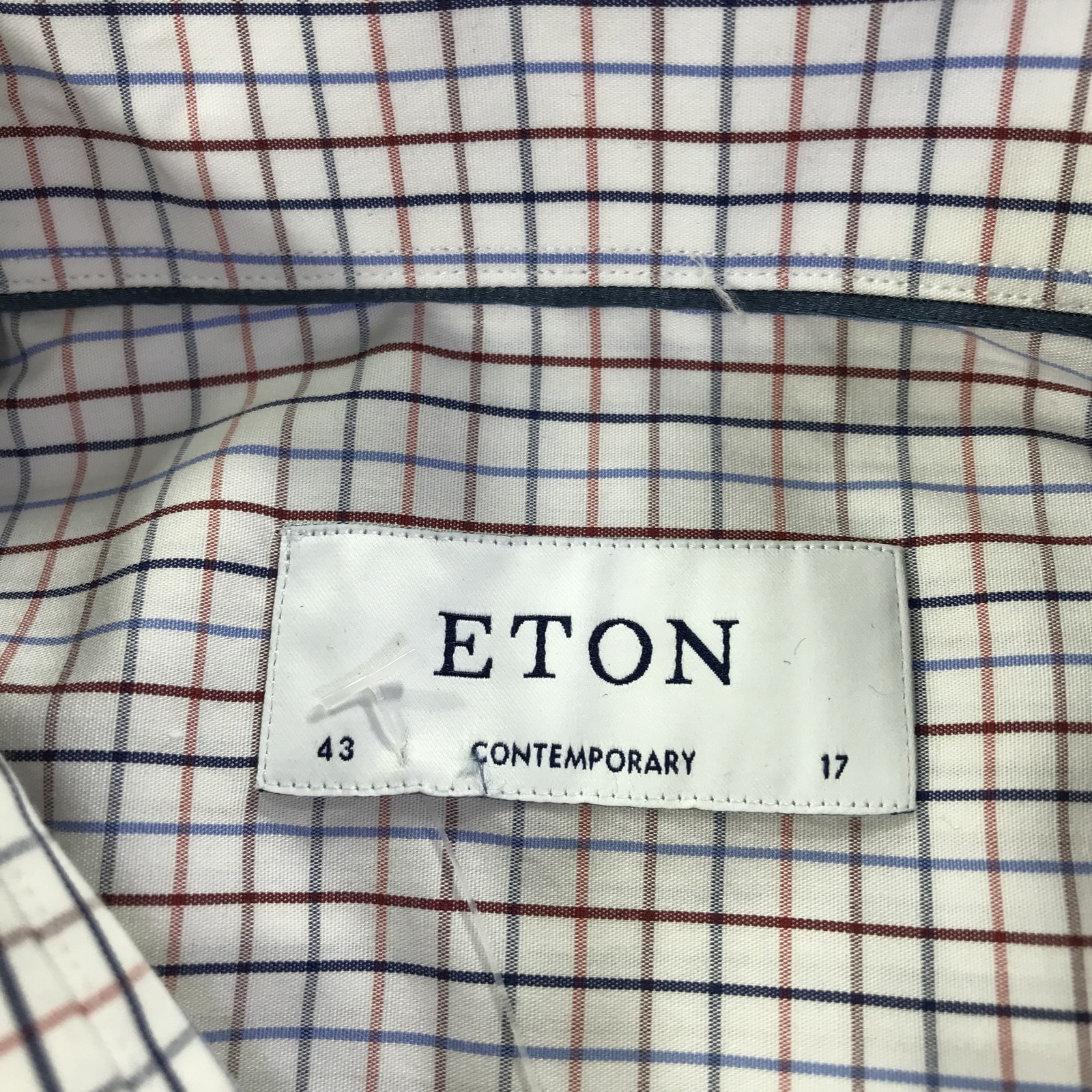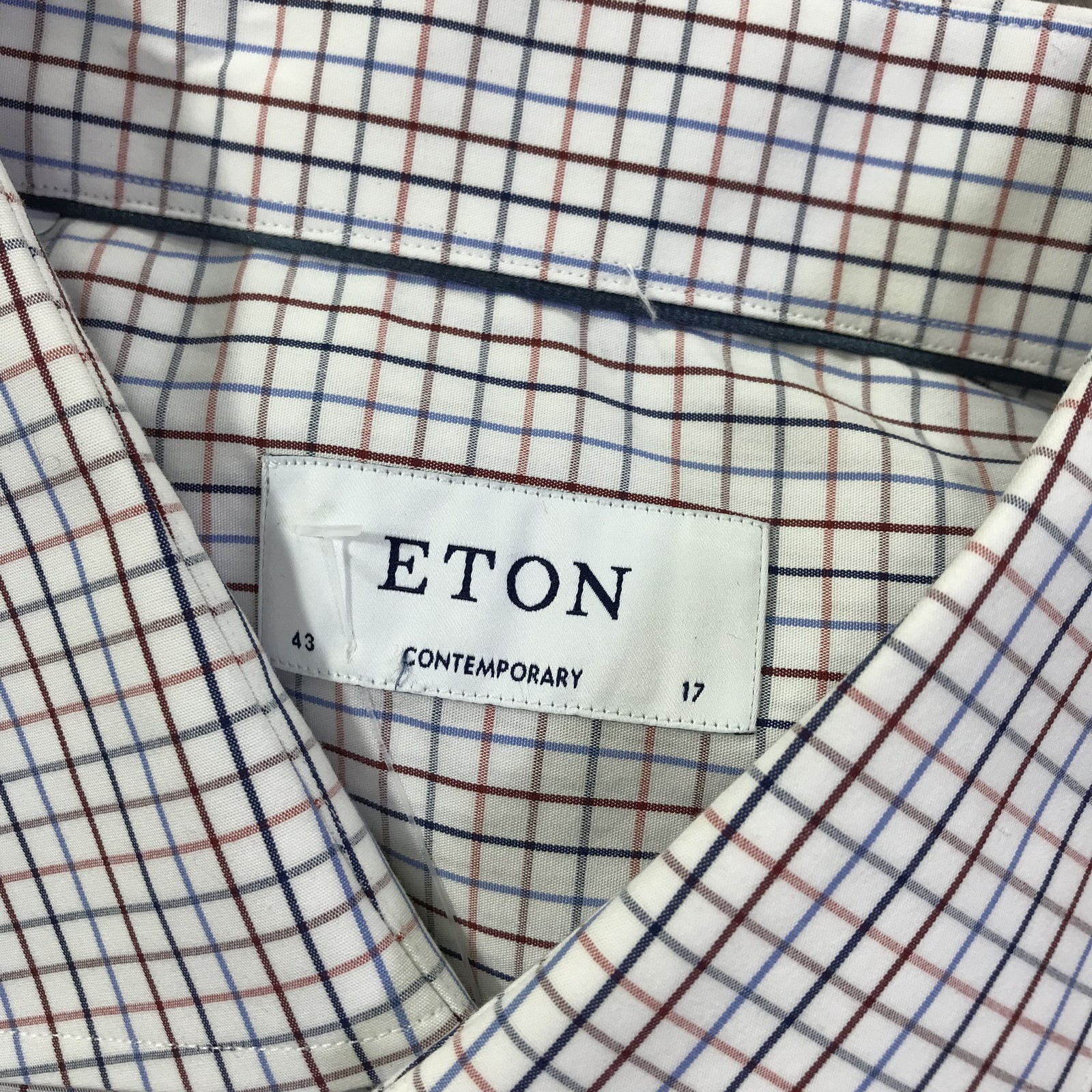 как выглядит Eton Shirt Mens 17 43 Large White Blue Red Plaid Long Sleeve Contemporary фото