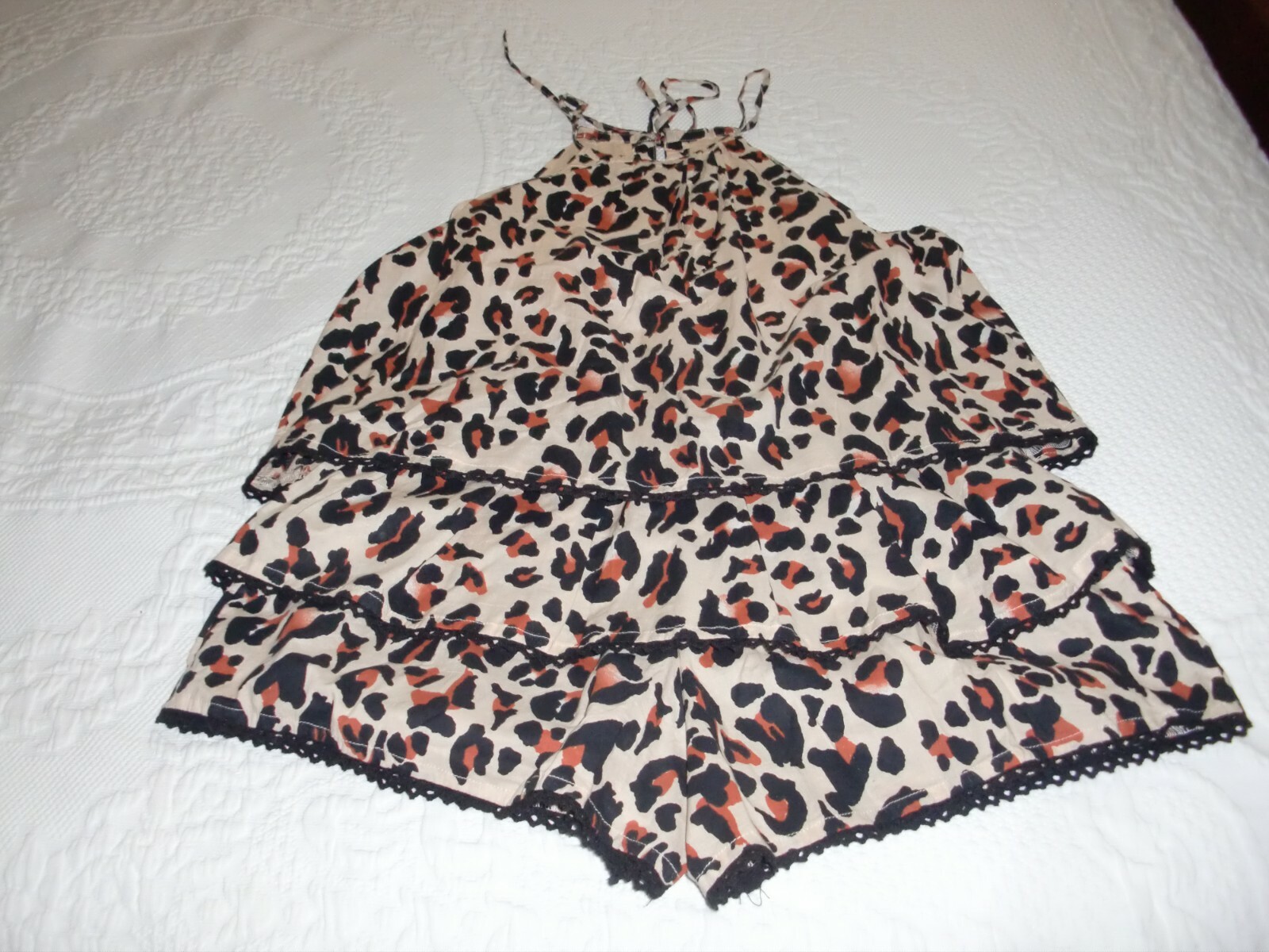 как выглядит NWOT URBAN OUTFITTERS RUFFLED STRAPPY ANIMAL PRINT 100 COTTON RUMPER Size XS фото