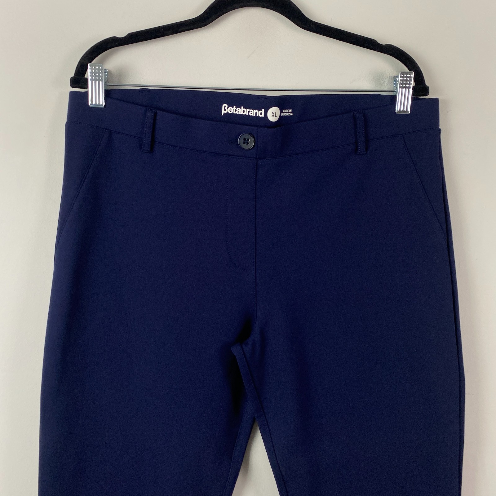 как выглядит Betabrand Cropped Straight Yoga Pants Size XL Navy Blue Pull On W0249 фото