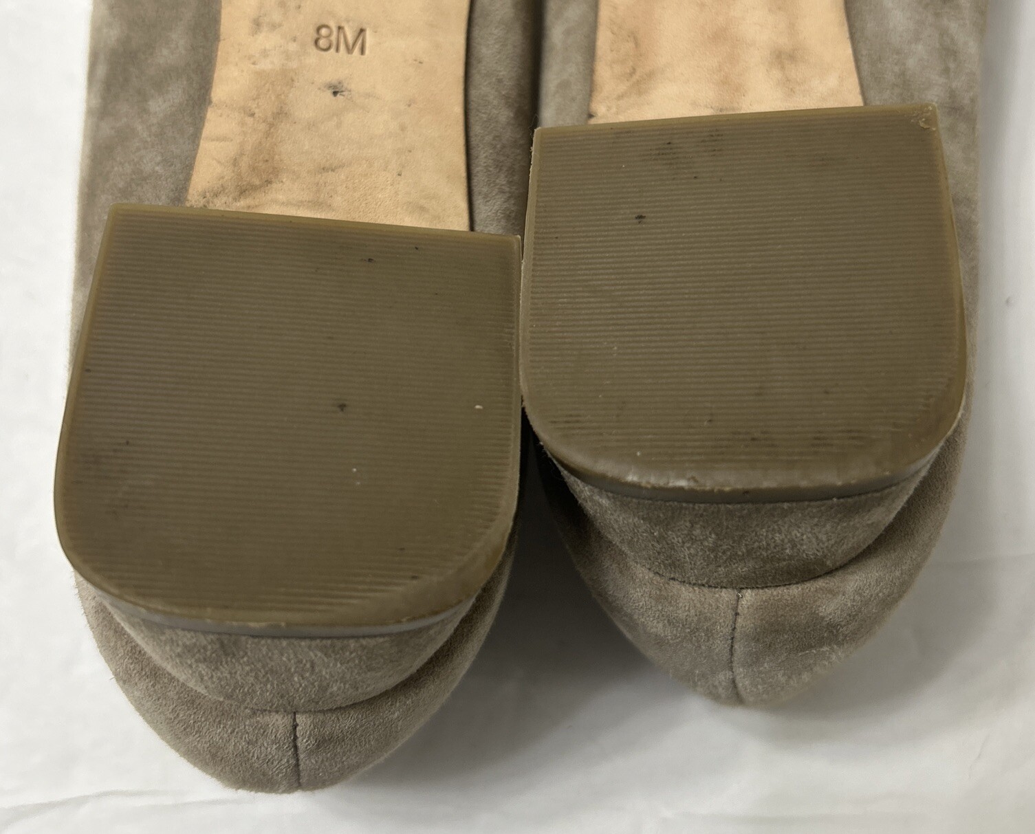 как выглядит Tory Burch Light Gray Suede Slip On Loafers Small Block Heel w/ Dust Bag Sz 8M фото