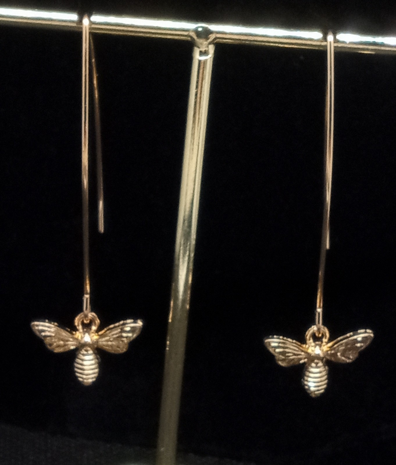 Delicate Bumble Bee Gold Plated Euro Hoop Hook Earrings NWOT Minimalist Style'25