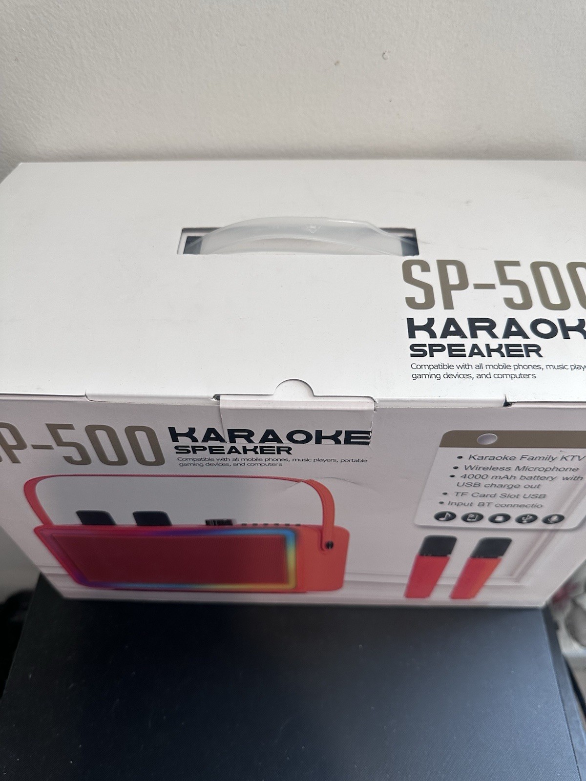 как выглядит SP-500 Karaoke Machine/Speaker black - 2 Wireless Microphones - LED New in box фото