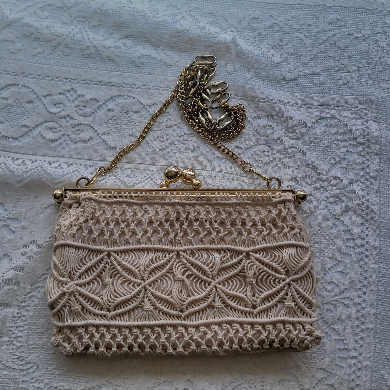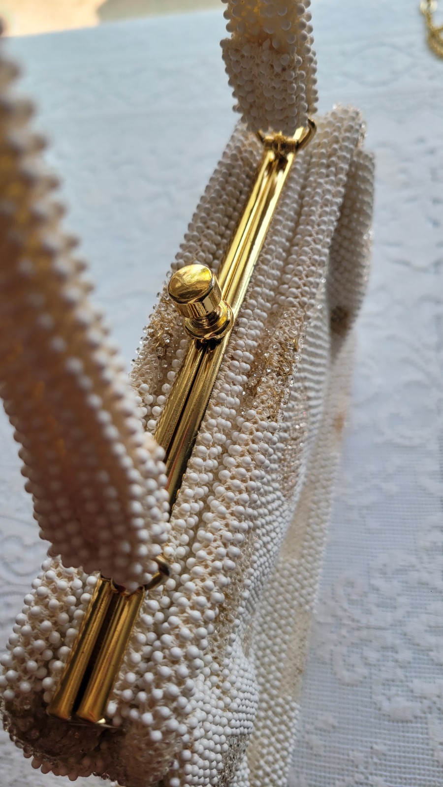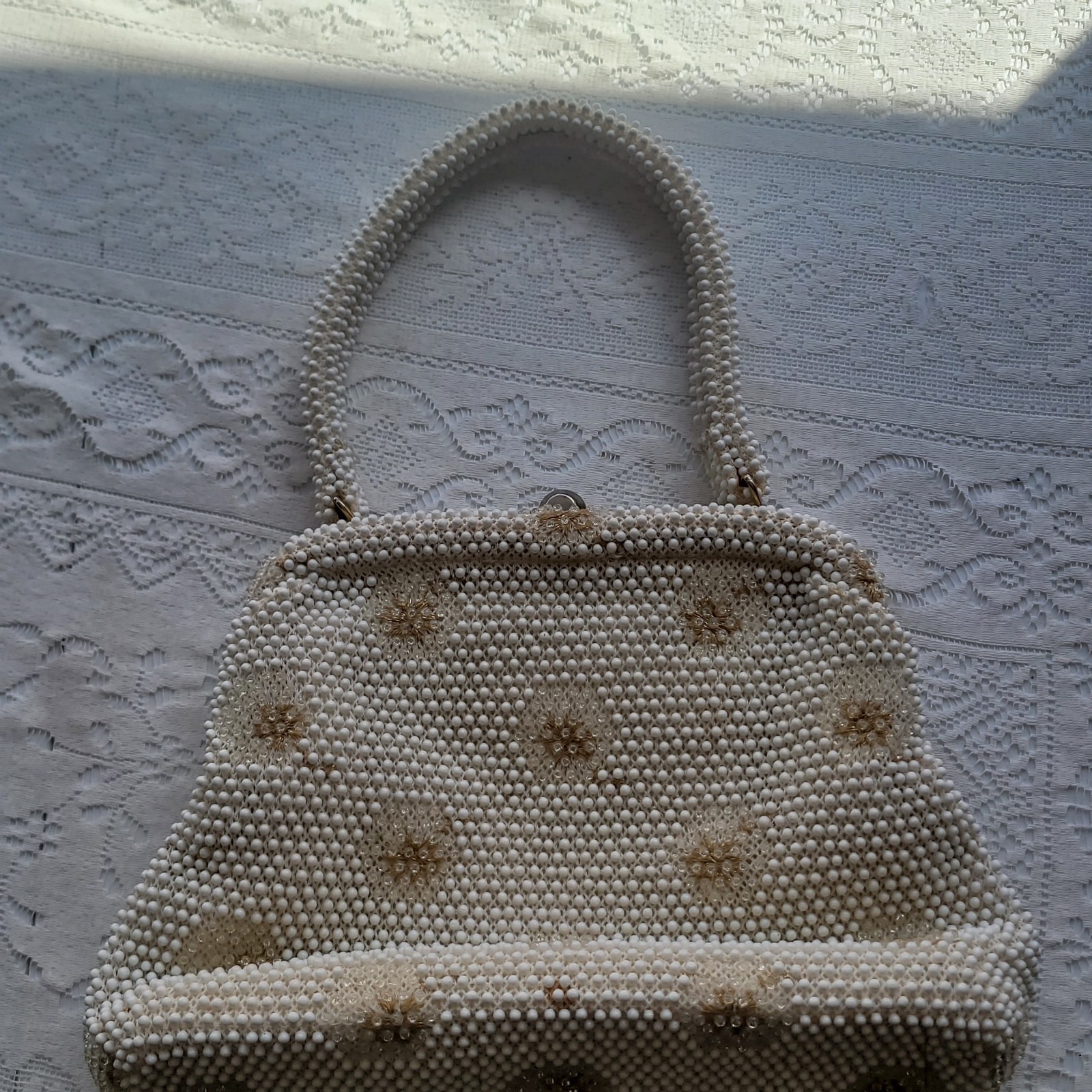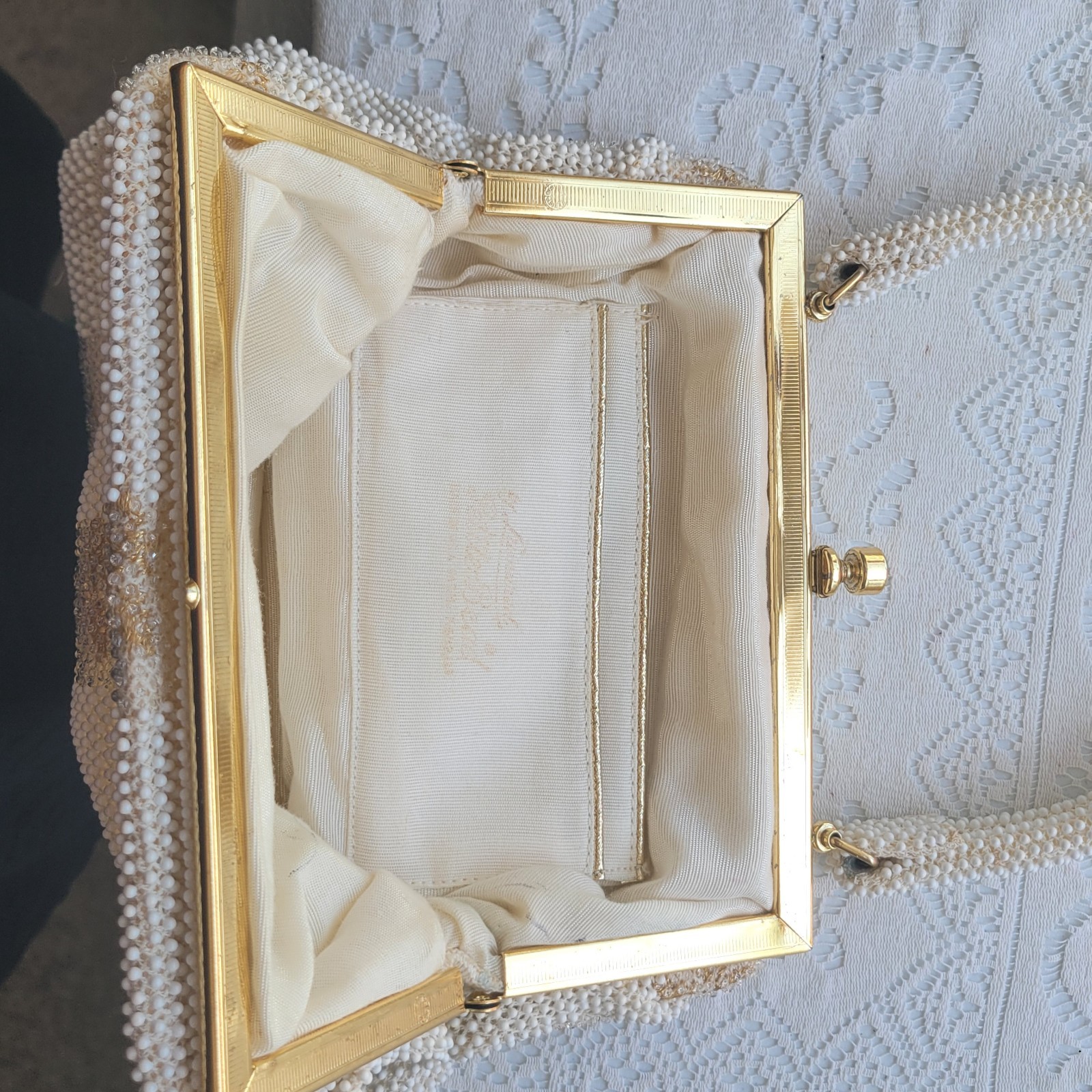 как выглядит Vintage Lot 4 Beaded Brocode Crotchet Purse Evening Handbag White Gold Bag фото