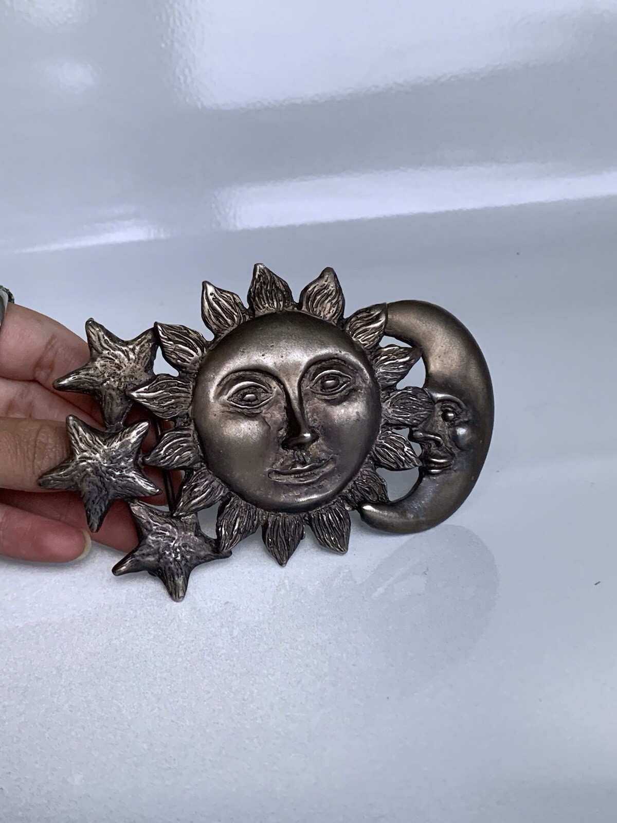 как выглядит Vintage Silver tone sun and moon belt buckle with celestial design 90s Y2K фото