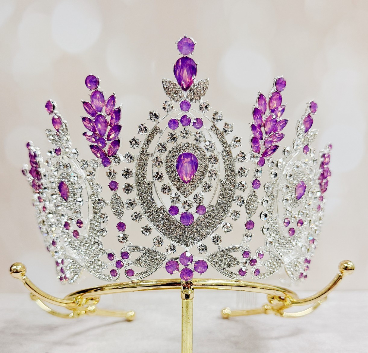 Wedding Bridal Crown, Princess Comb Crown, Silver Crystal Headwear, Purple Stone