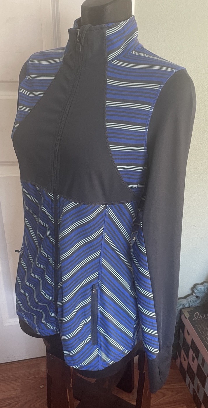 как выглядит Women KYODAN Full Zip Gray Blue Stripe Full Zip Athletic Jacket, size Unknown фото