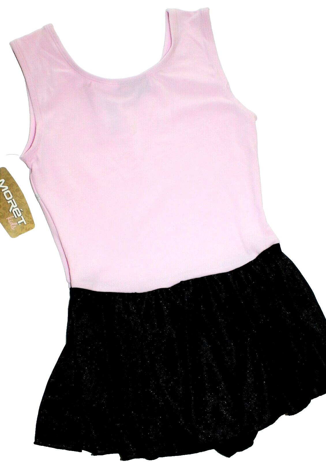 GIRLS LEOTARD LARGE 12-14 ATTACHED SKIRT MORET KIDS PINK/BLACK/SILVER NEW/TAGS