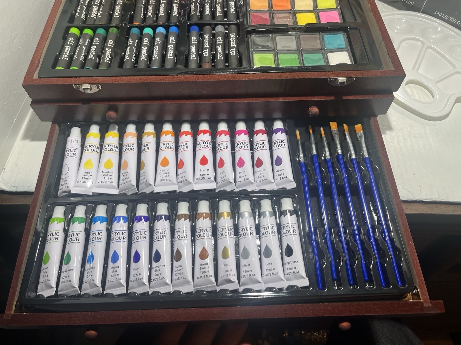 как выглядит 195 Piece Deluxe Art Set with 2 Drawing Pads Acrylic Paints Crayons Colored P фото