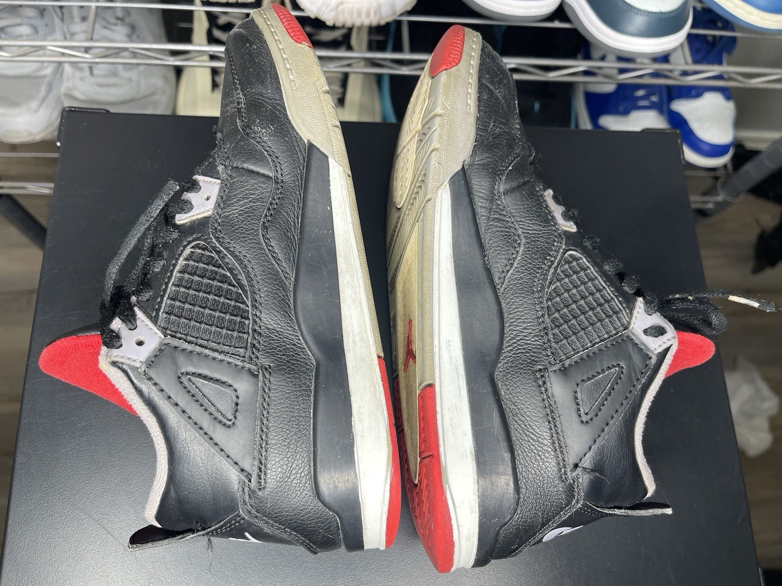 как выглядит Nike Air Jordan 4 Retro Bred Reimagined Youth Size 3Y Black Red Shoes BQ7669-006 фото