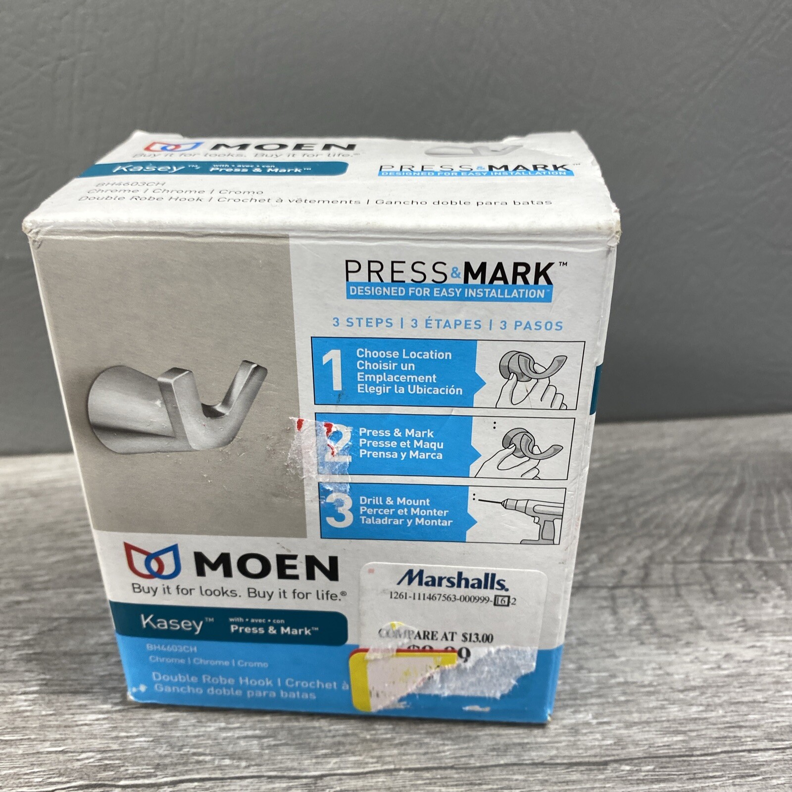 как выглядит MOEN Kasey Press Mark Chrome Double Robe Hook BH4603CH No Hardware Open Box фото