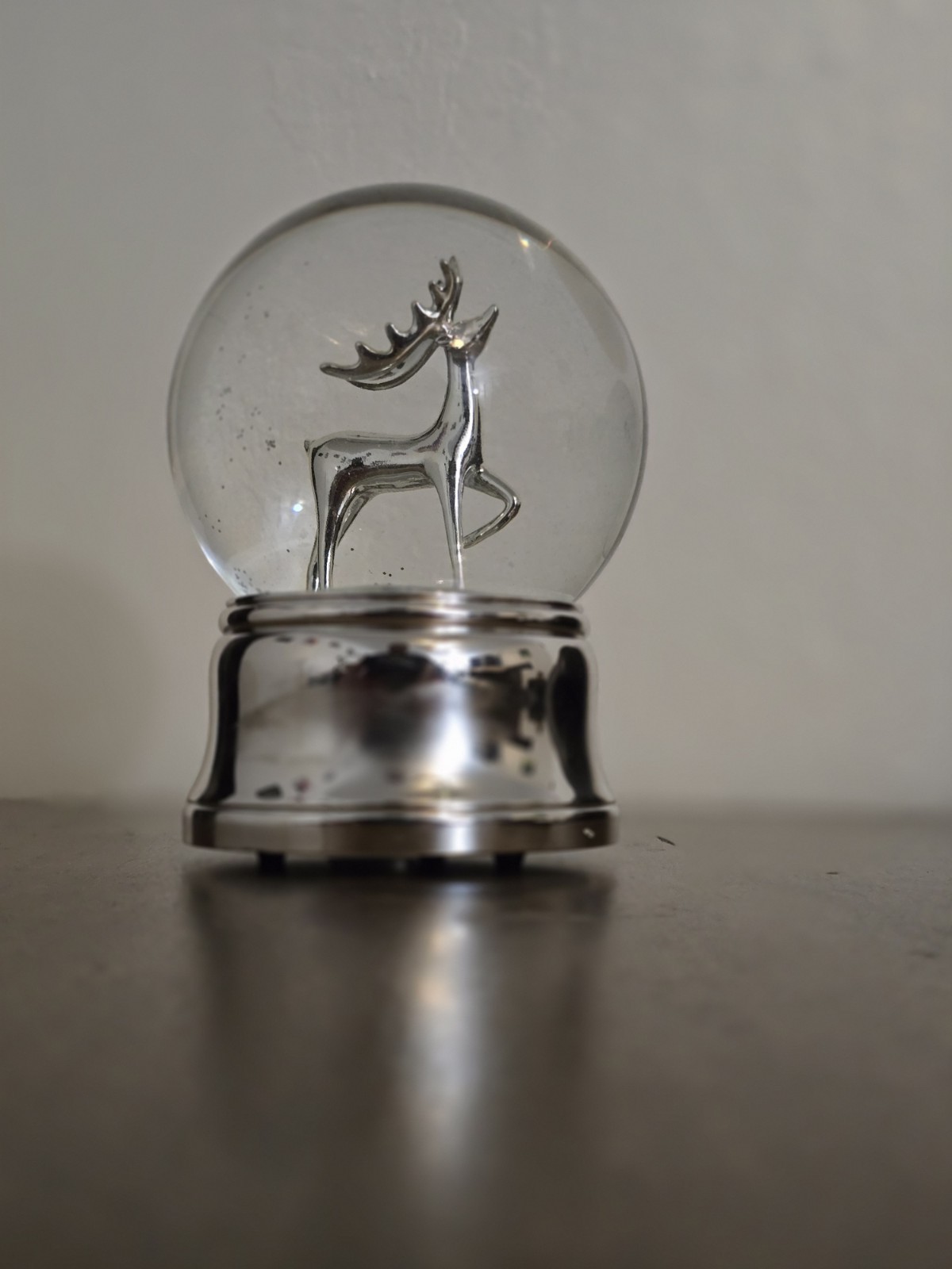 • Silver Base Reindeer Snow Globe Sings Jingle Bells