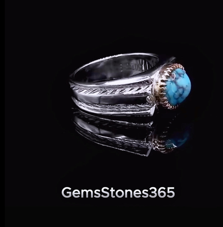 Beautiful Neeshapuri Feroza Ring Handcrafted Turquoise Sterling Silver 925