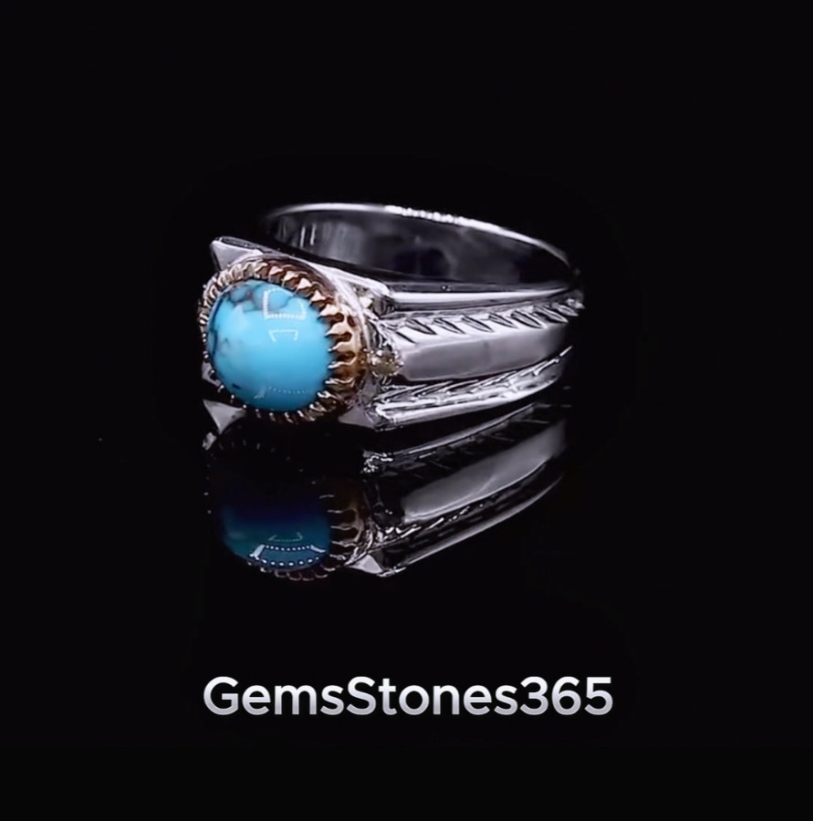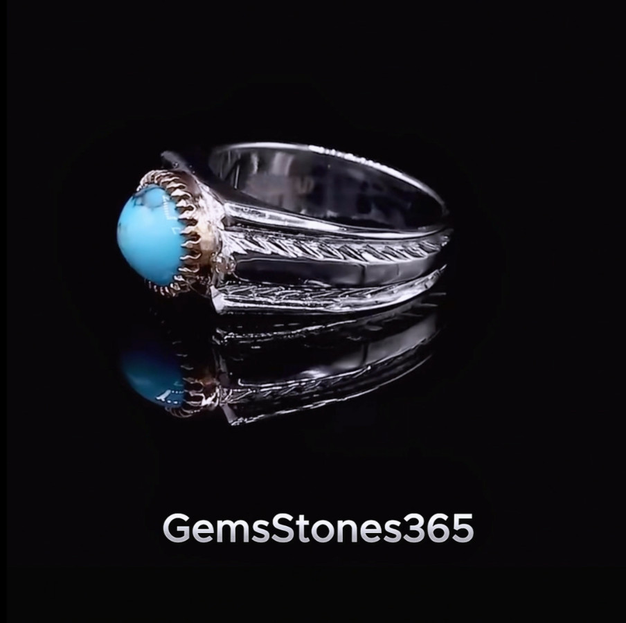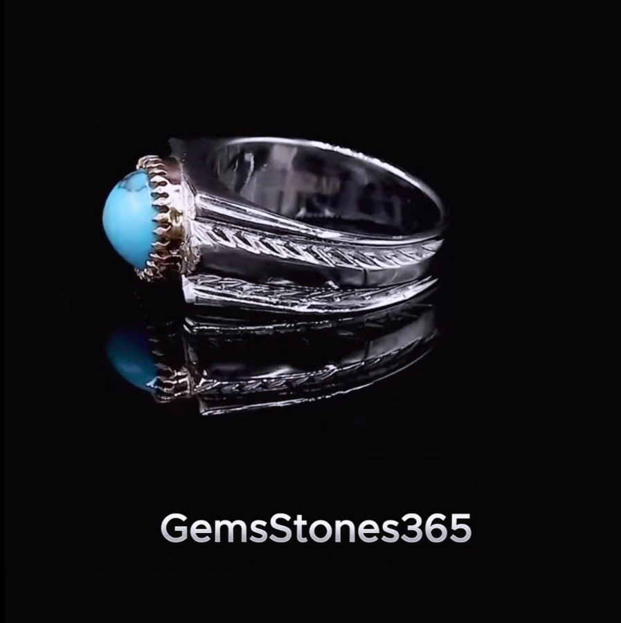 как выглядит Beautiful Neeshapuri Feroza Ring Handcrafted Turquoise Sterling Silver 925 фото