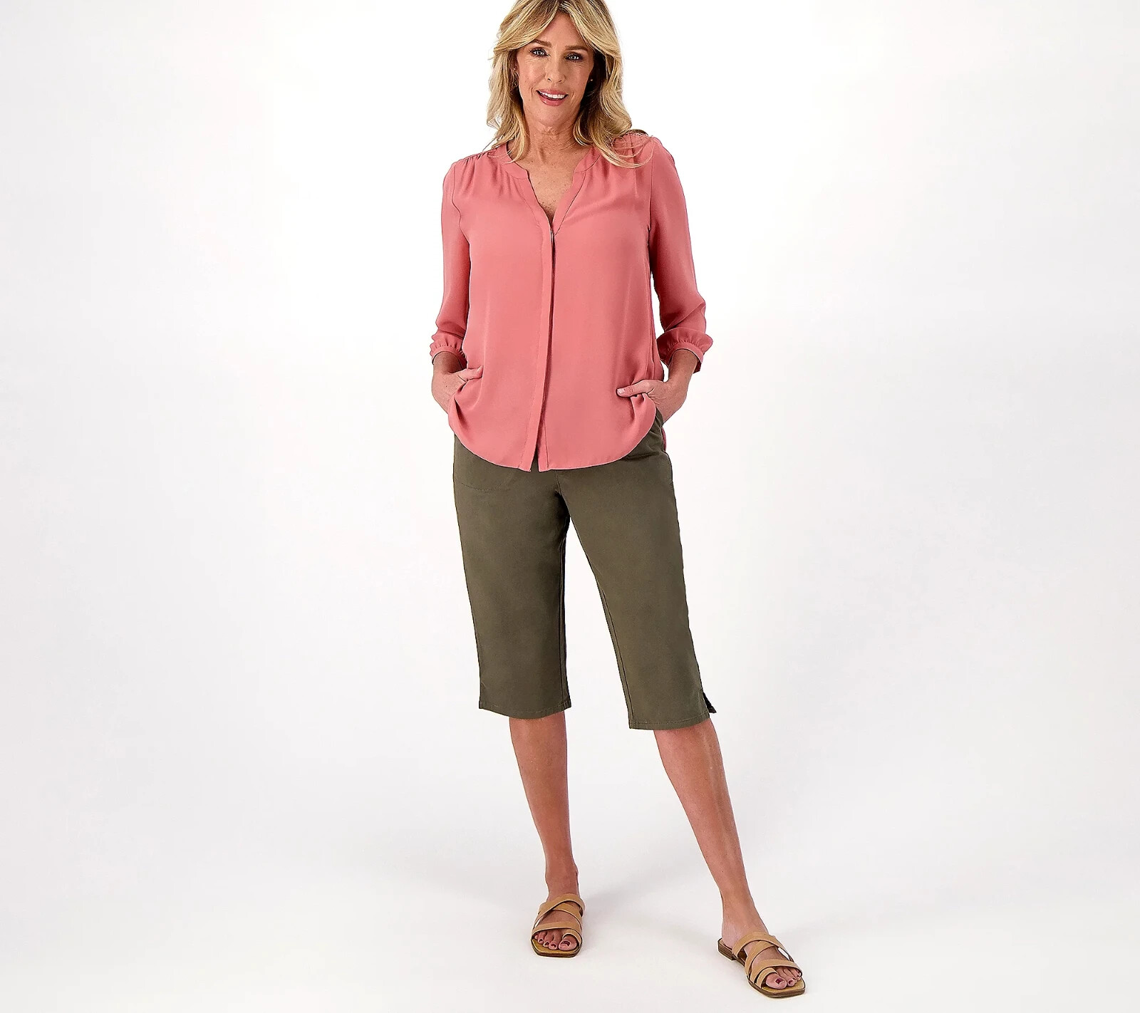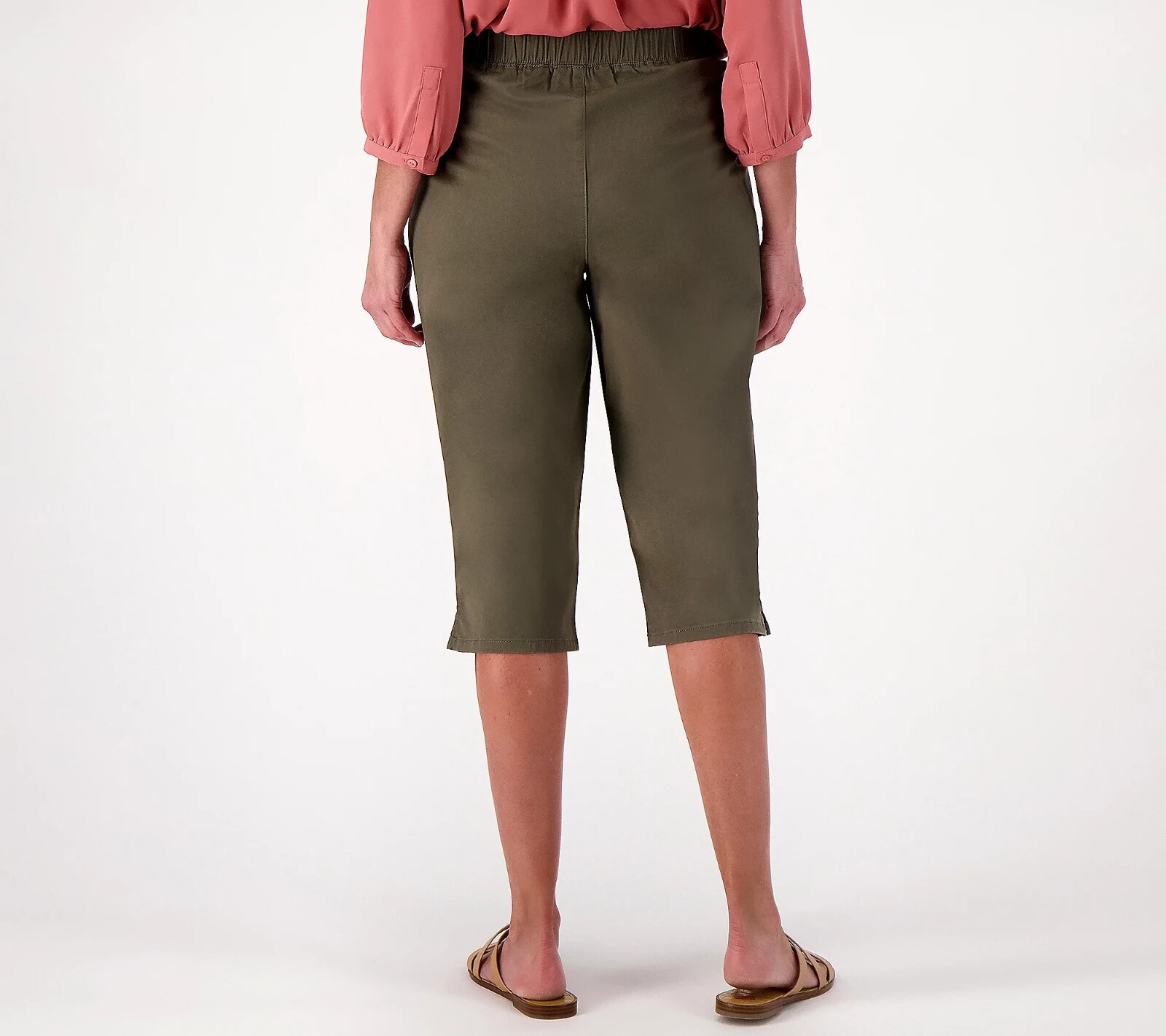 как выглядит Denim Co. EasyWear Twill Regular Relaxed Pull-On Skimmer dark Olive XL A575304 фото
