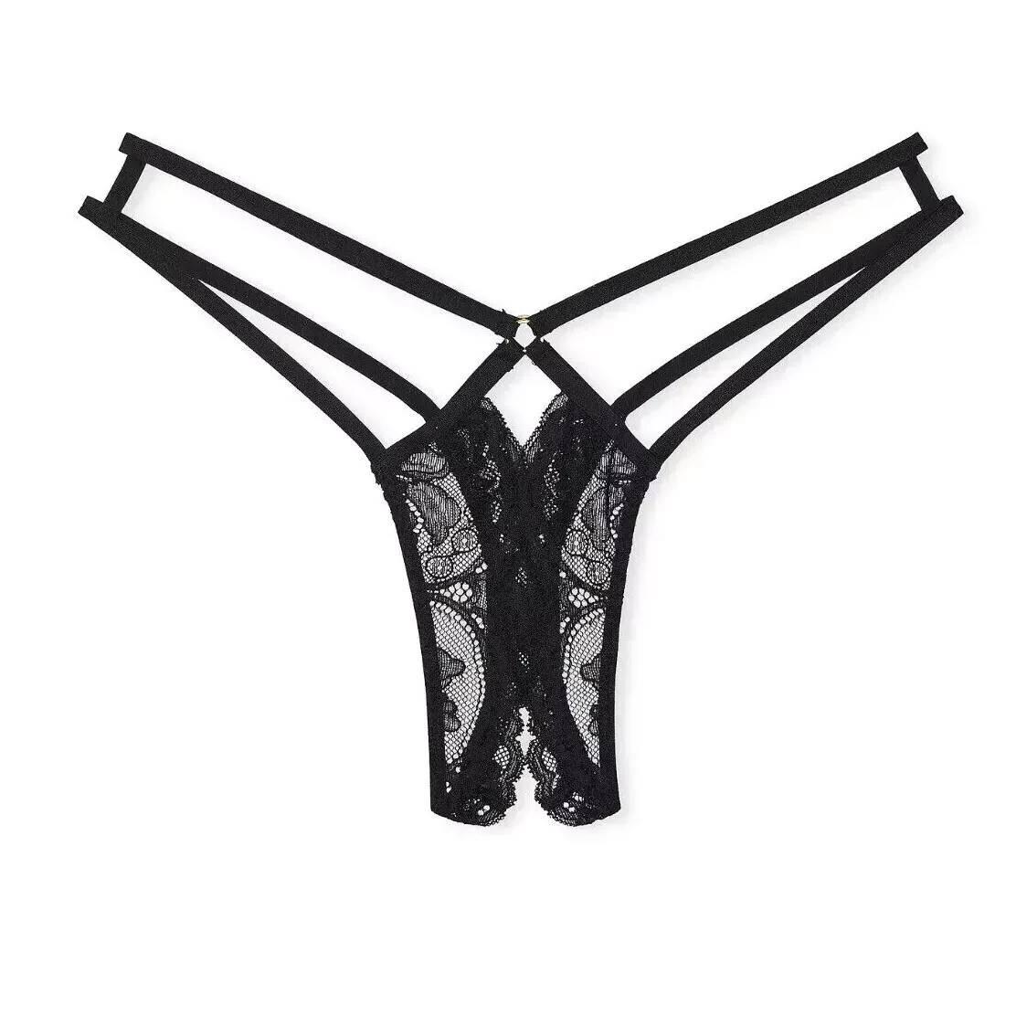 Victoria's Secret Lace Strappy Crotchless Thong Small Black
