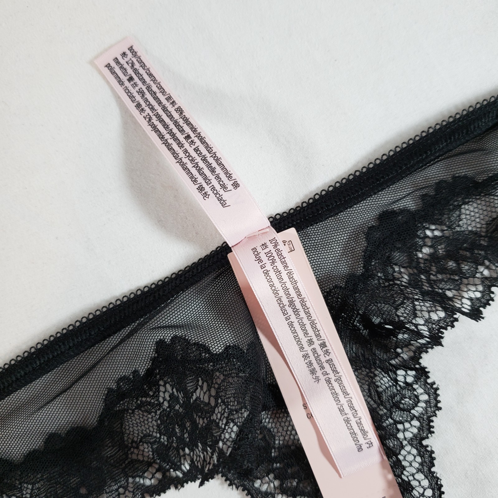 как выглядит Victorias Secret Mesh Lace-Trim High-Leg Thong Large Black Sheer Floral фото