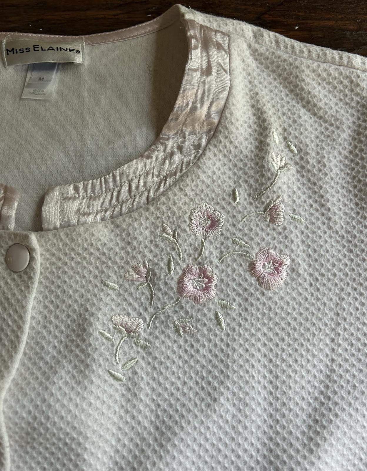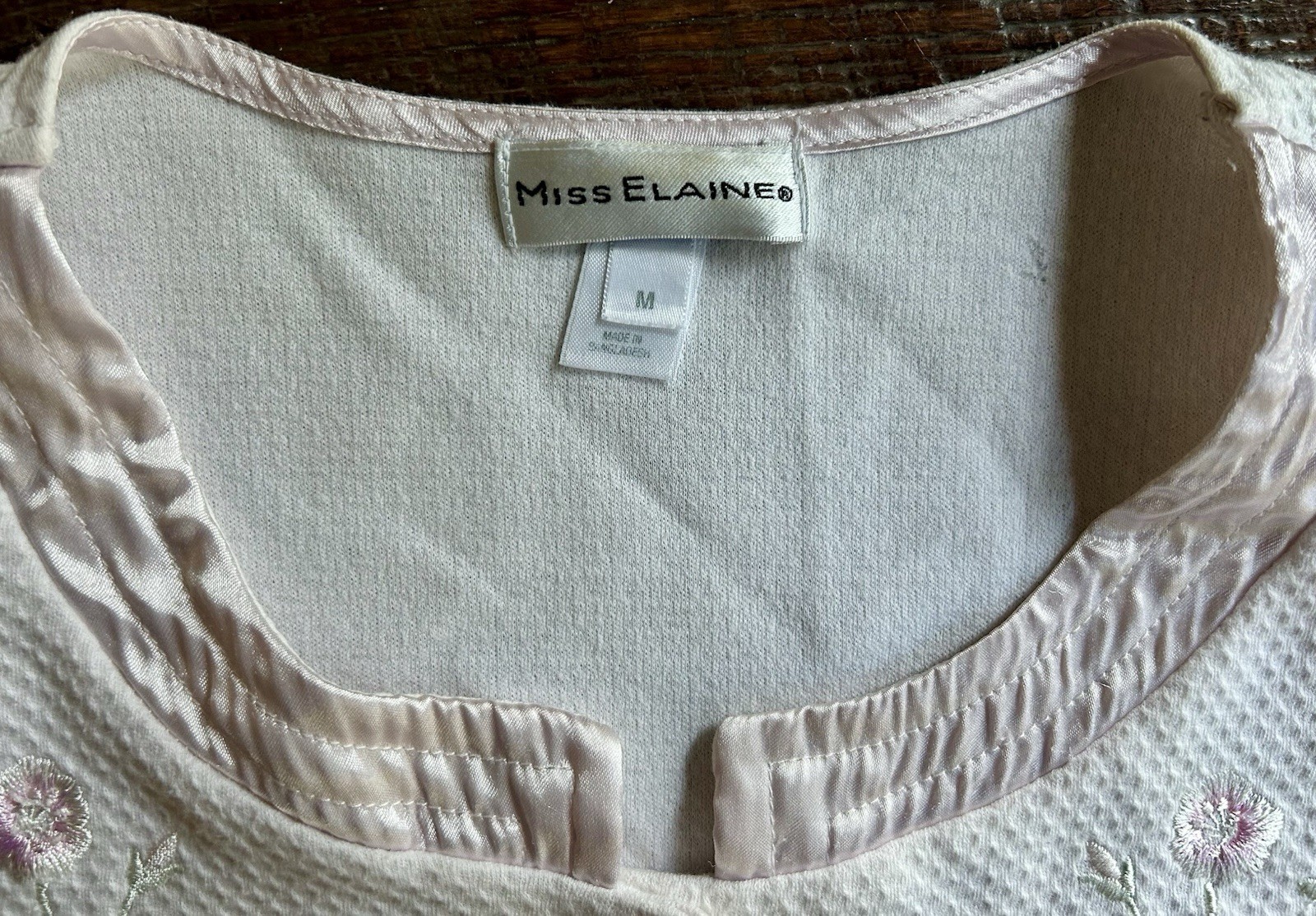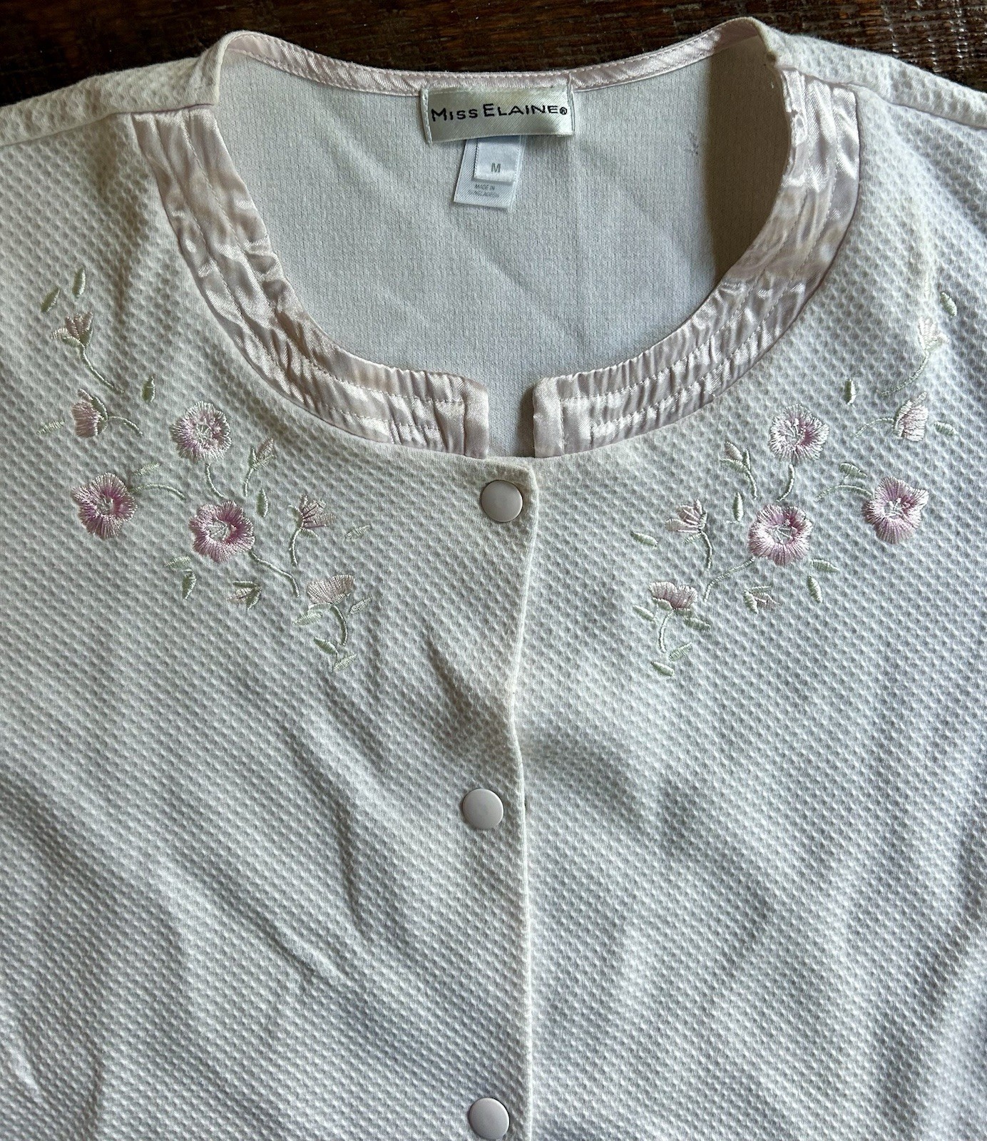 Miss Elaine Size M Pink Waffle Weave Snap Floral Housecoat Robe Pockets