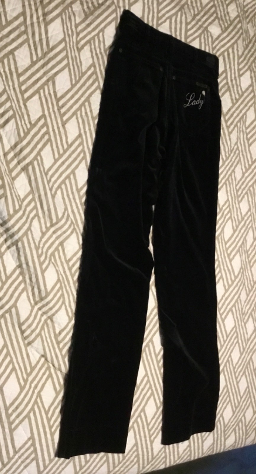 как выглядит ONE OF A KIND, UNWORN VINTAGE BLACK VELVET KENNY ROGERS PANTS, SIZE SMALL фото