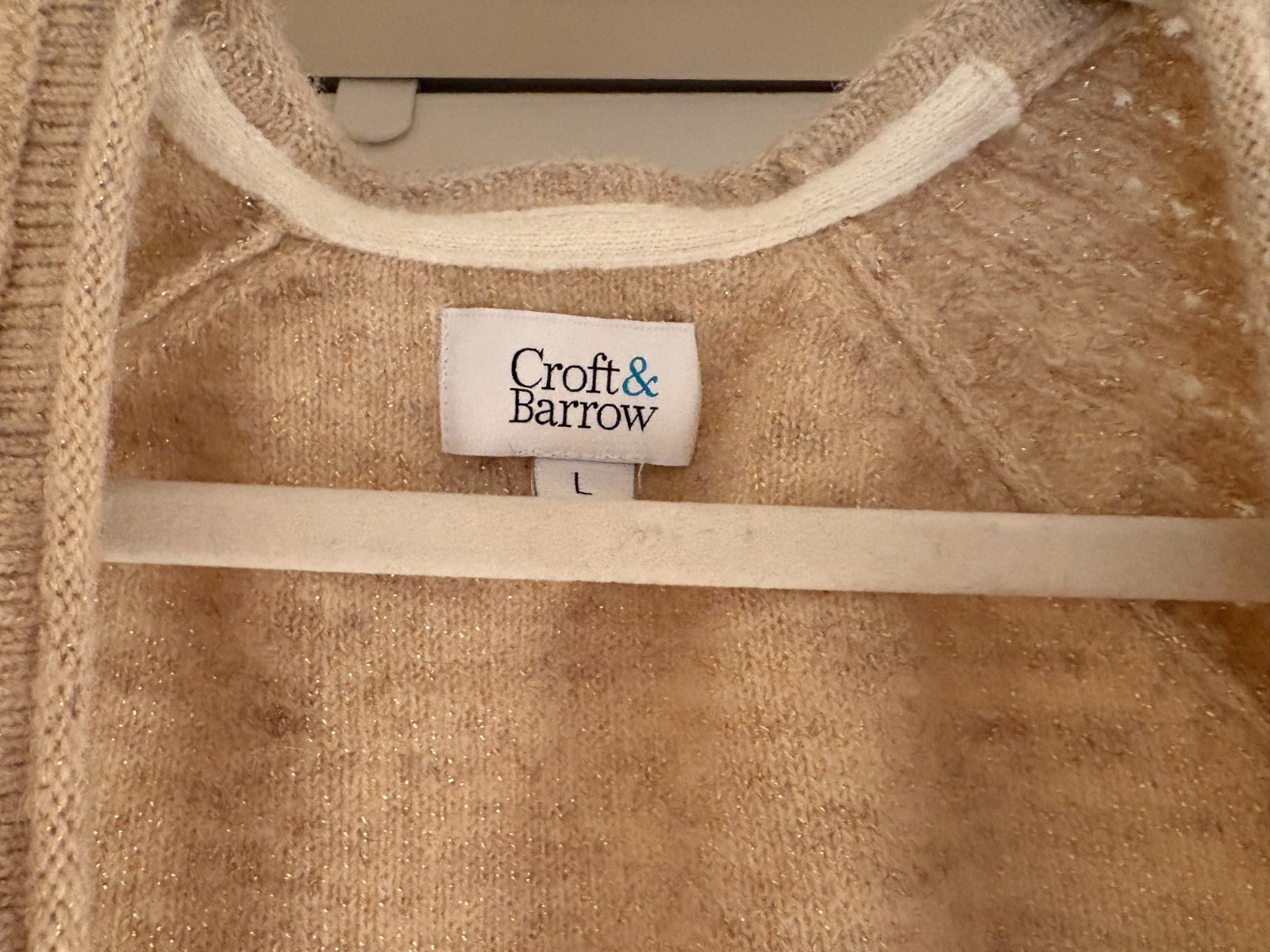 как выглядит Croft Barrow Ladies Cardigan, Metallic, Beige, Eyelet, L, NWOT фото