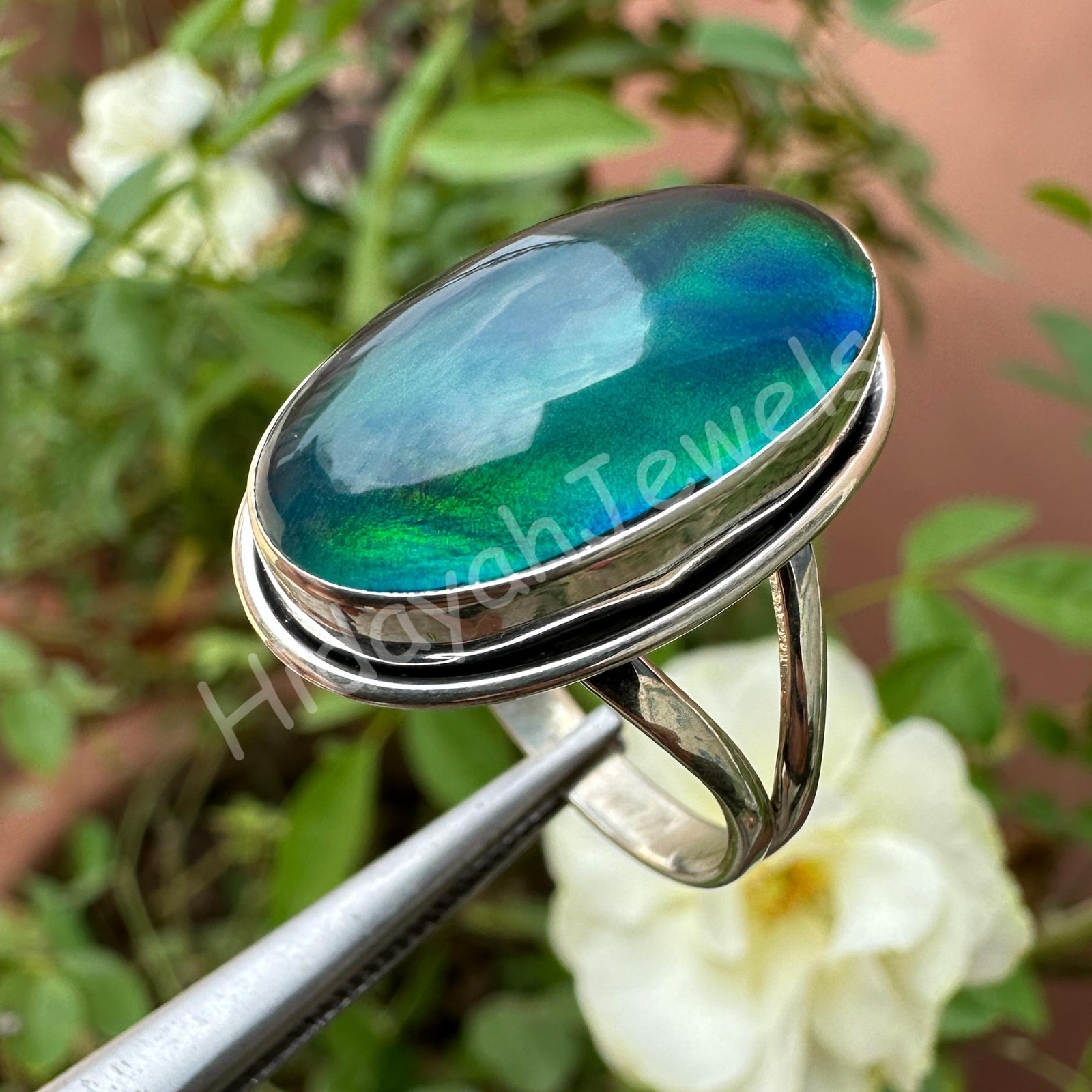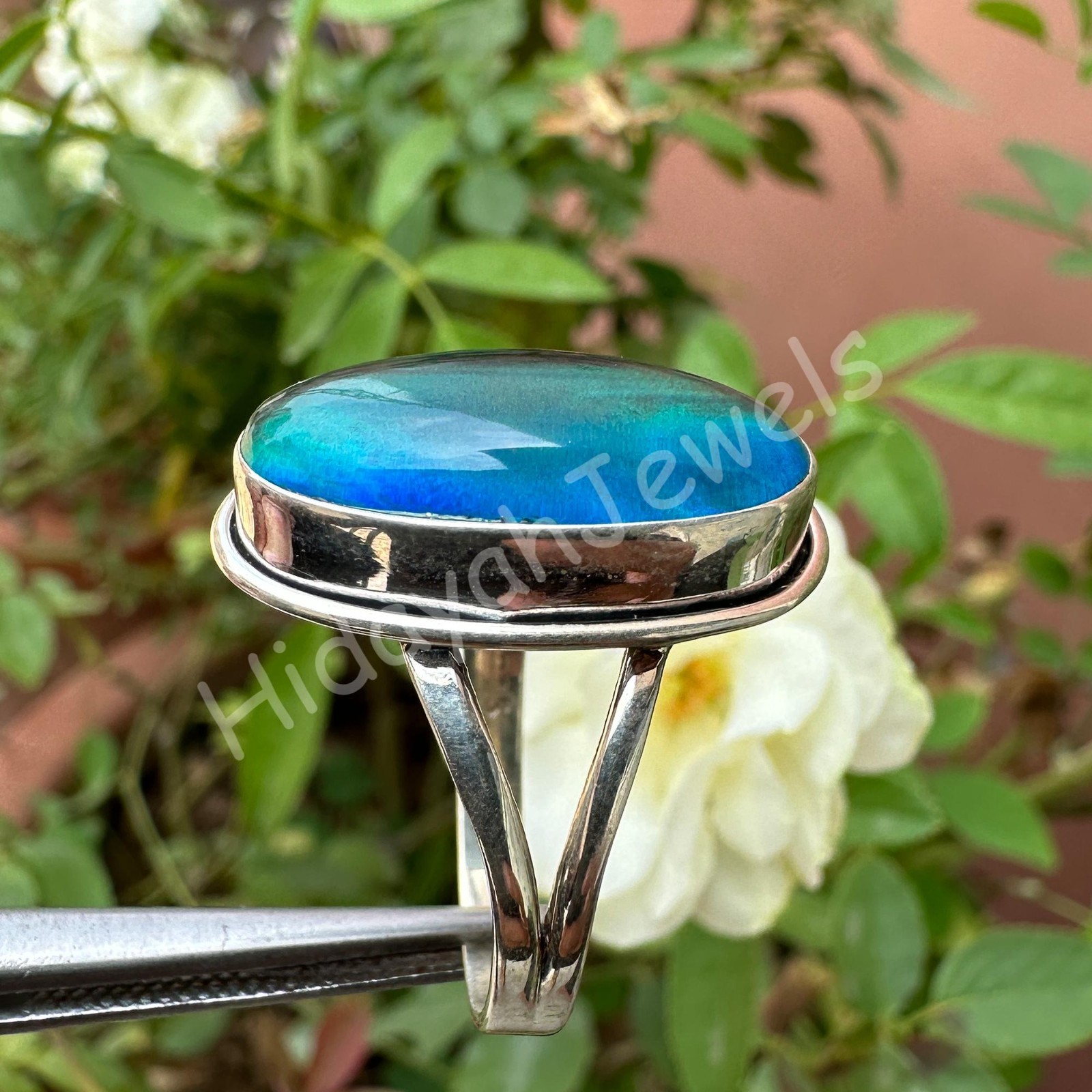 25 Ct Aurora Opal 925 Sterling Silver Ring Oval Beautiful Women Ring Size 9.75