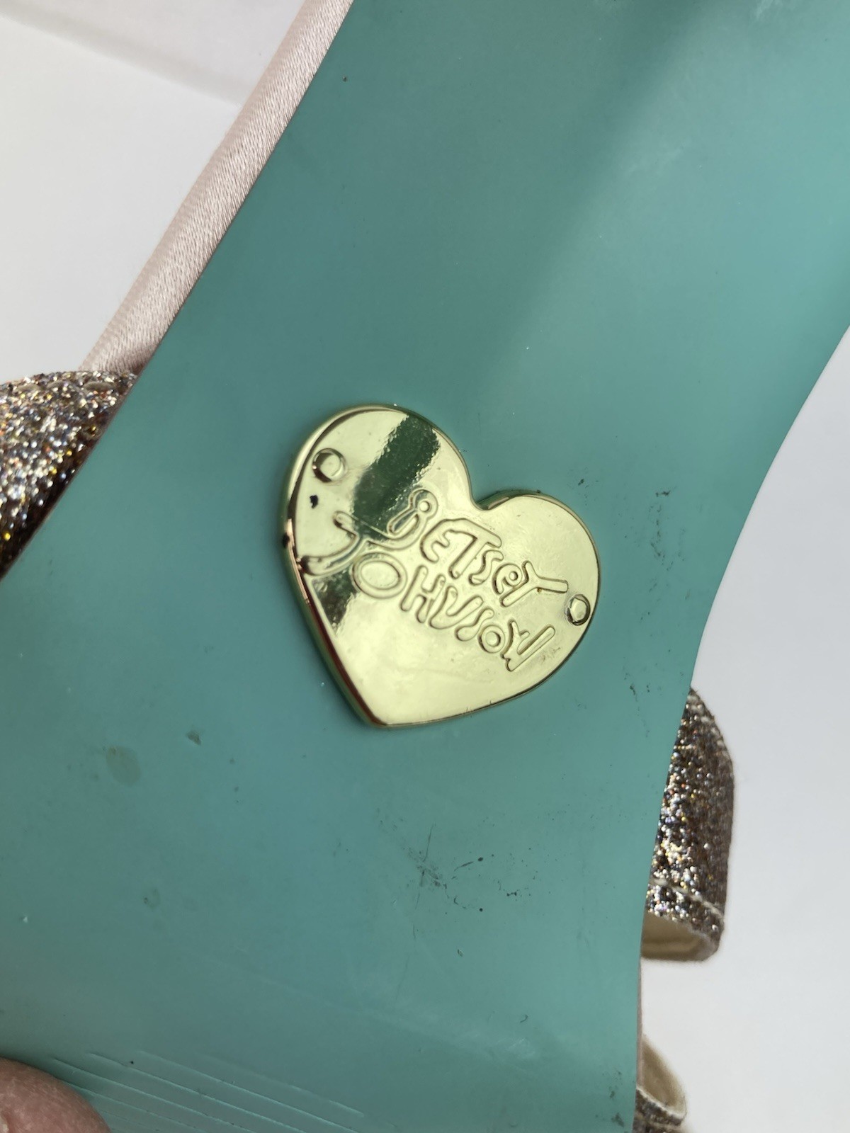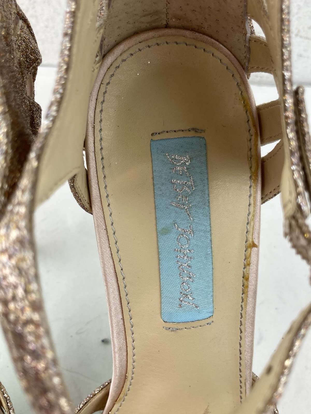 Blue by Betsey Johnson Tee Heels Womens 7 Champagne Glitter Strappy Cut Out