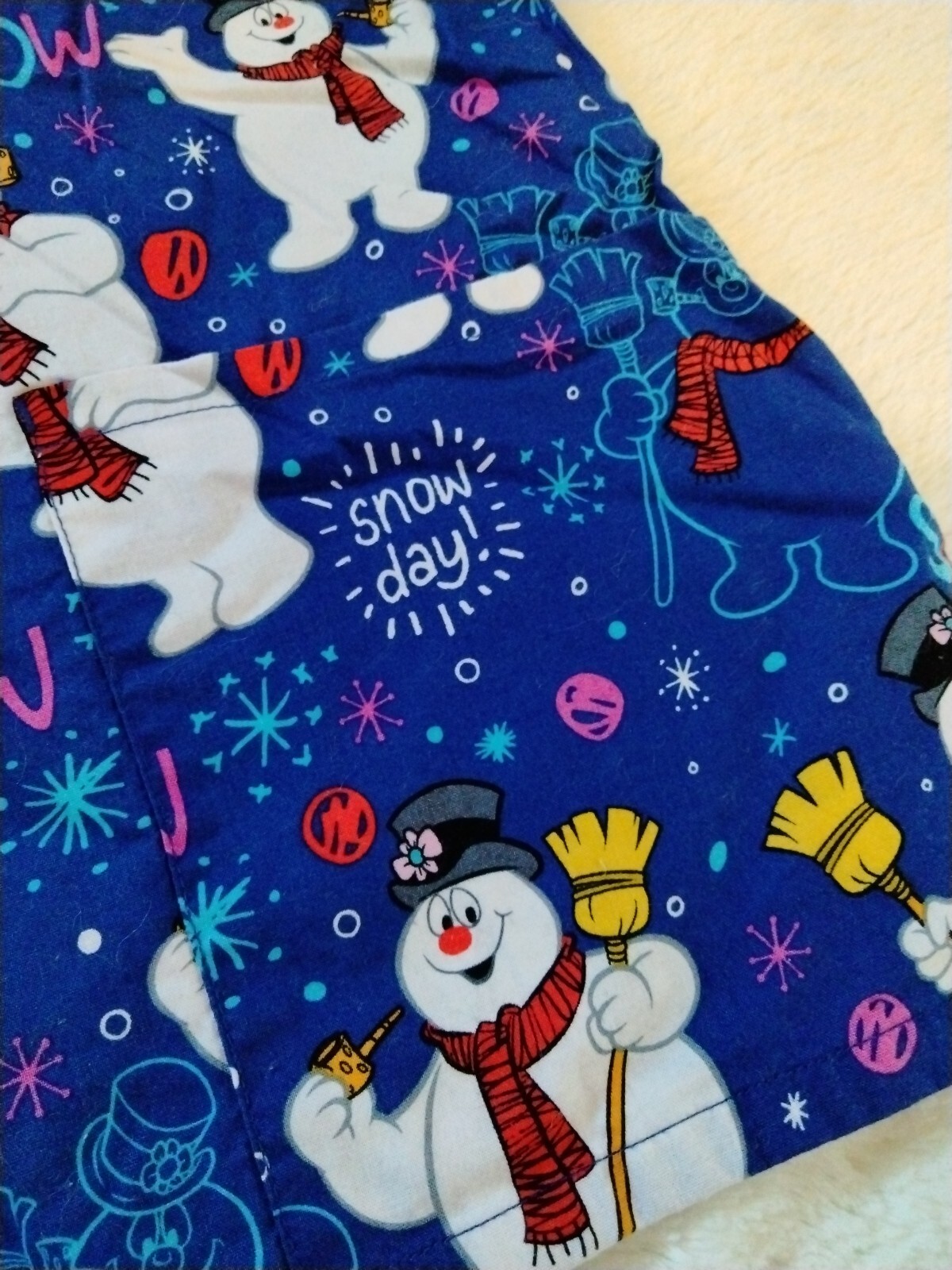 Women's Small Scrub Top Shirt frosty the snowman blue Snow Day Cotton