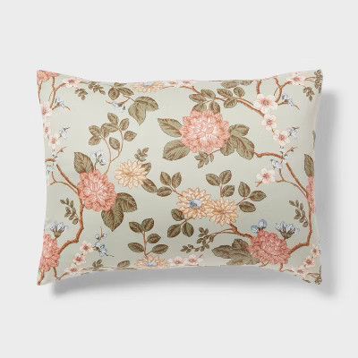 Full/Queen Traditional Floral Print Comforter and Sham Set Light Sage