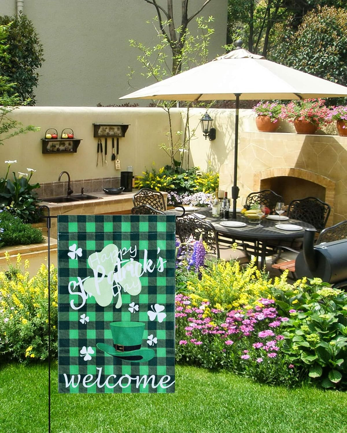 как выглядит St Patricks Day Garden Flag 12X18 Inch Double Sided Outside, Shamrocks Lucky Clo фото