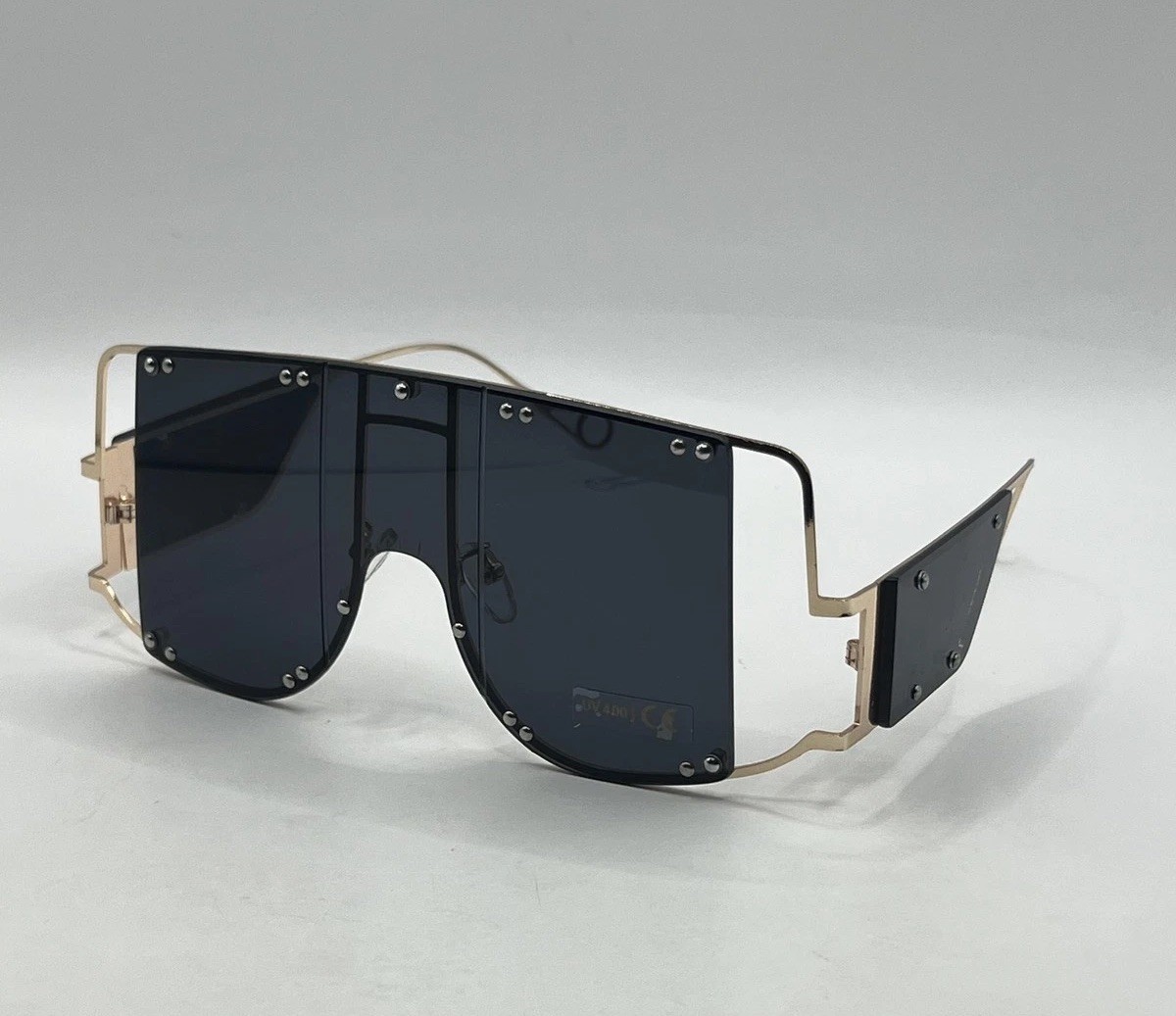 Futuristic Oversized Shield Sunglasses Gold Frame Black UV400 Lens Unisex Party