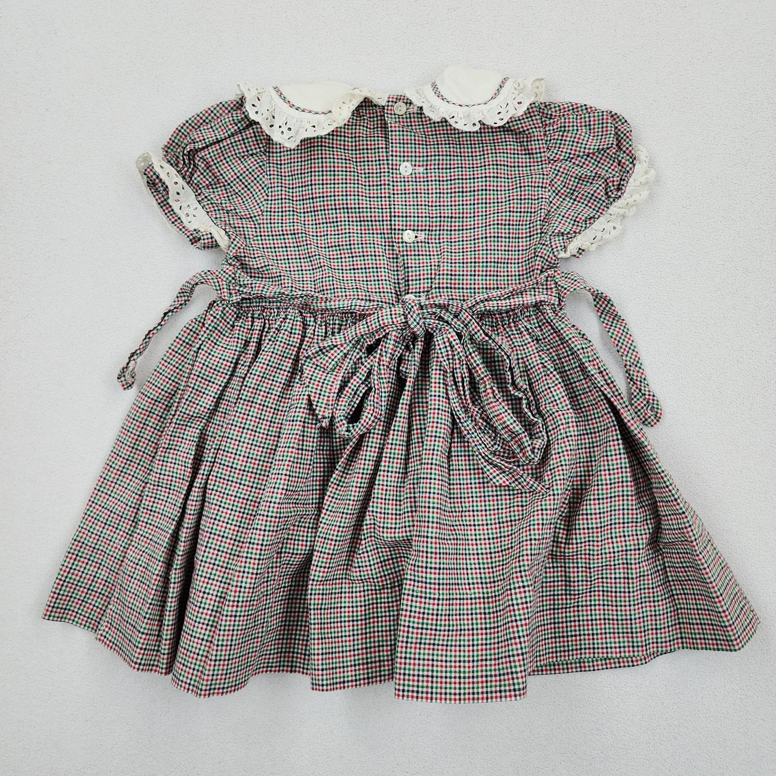 Vintage 50s 60s Plaid Cotton Girls Bib Collar Dress Fluffy Ruffle Texas