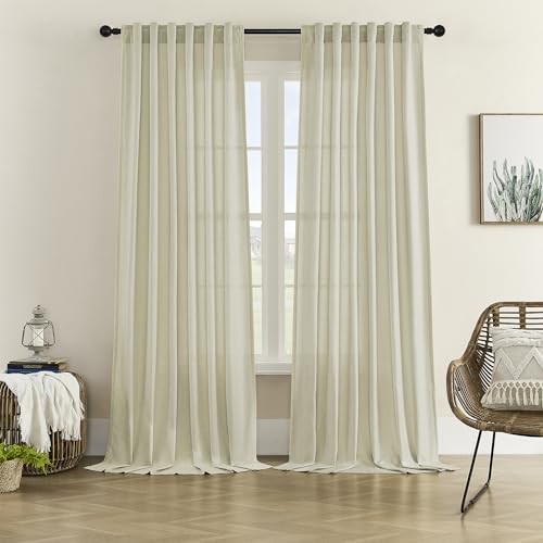 как выглядит Natural Linen Blended Curtains Back Tab 50"W x 90"L Pack of 2 Sandshell фото