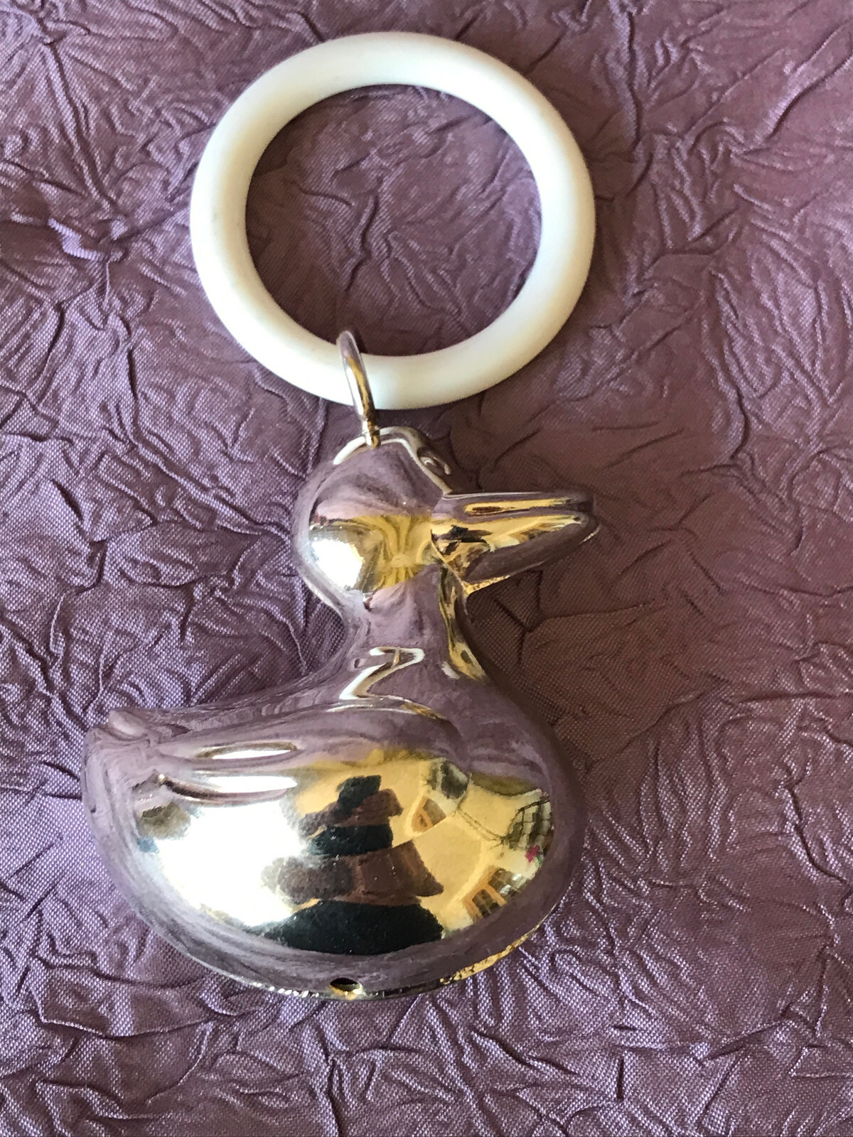 как выглядит Vintage Silverplate Set of Baby Girl Gifts - Duckie Bank, Sippy Cup Rattle фото