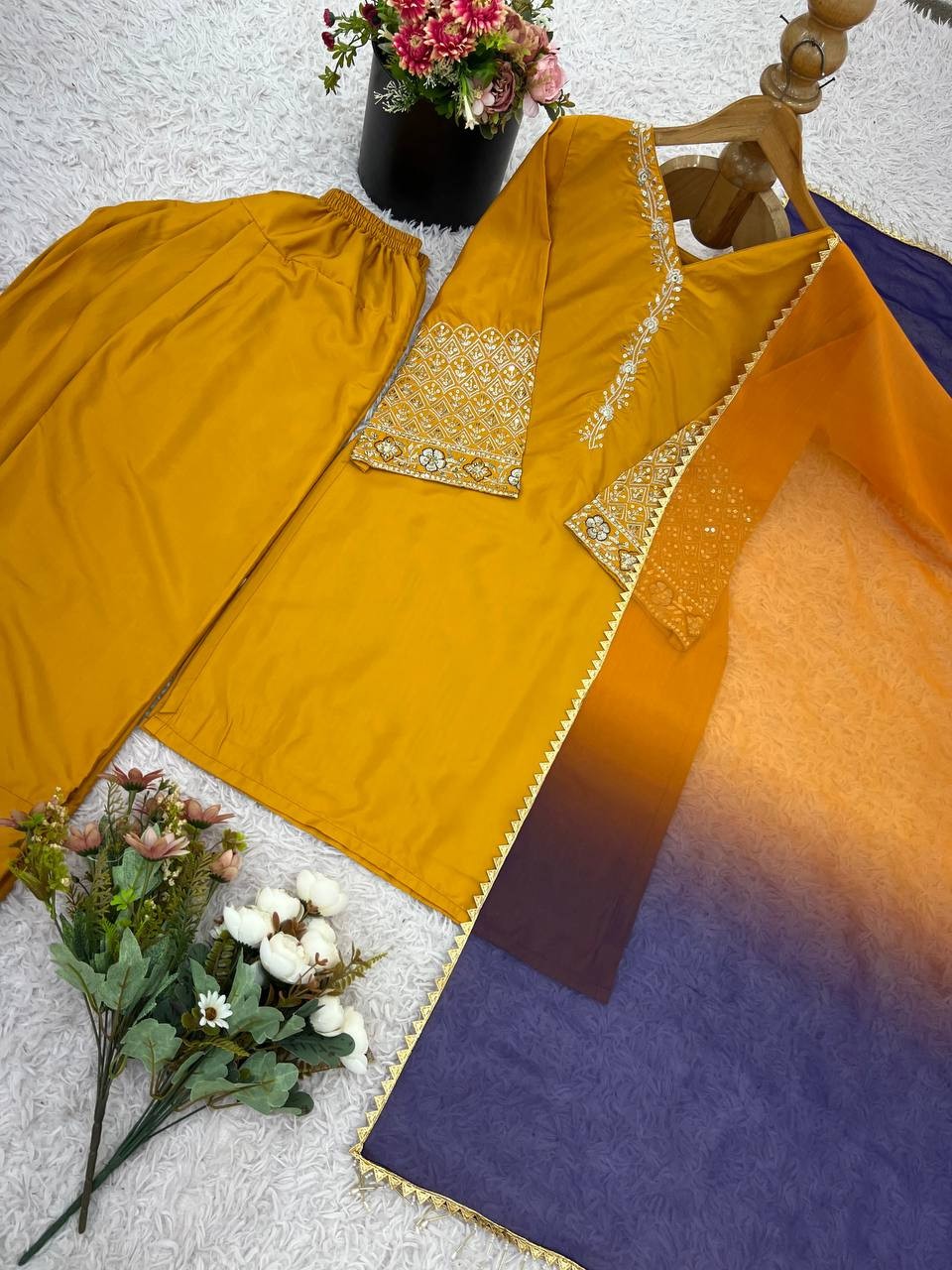 New Collection Natural Satin Silk Top And Farshi Pent With Dupatta For Women