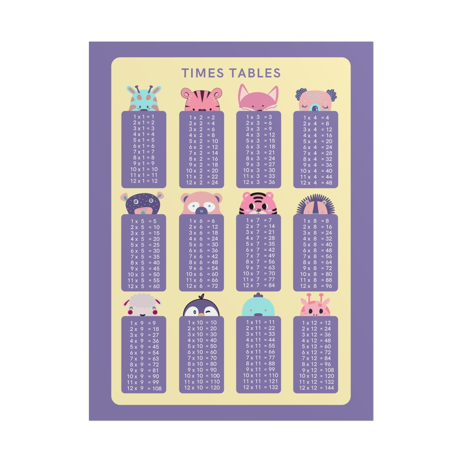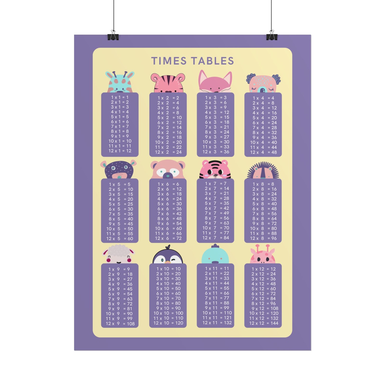 Rolled Posters Purple Multiplication Times Table Math Educational Poster, Cute