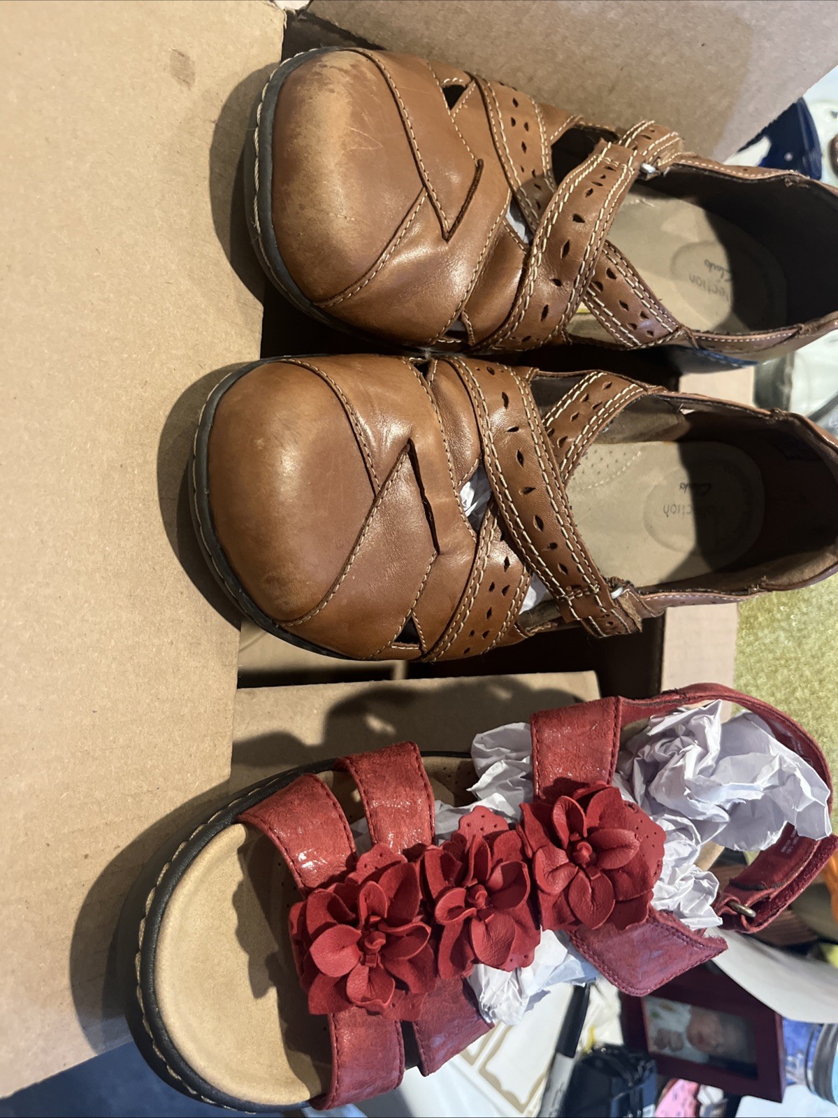 Clarks Collection Tan Leather Slip On With Bonus Pair Of Red Clarks Size 8 VG 2
