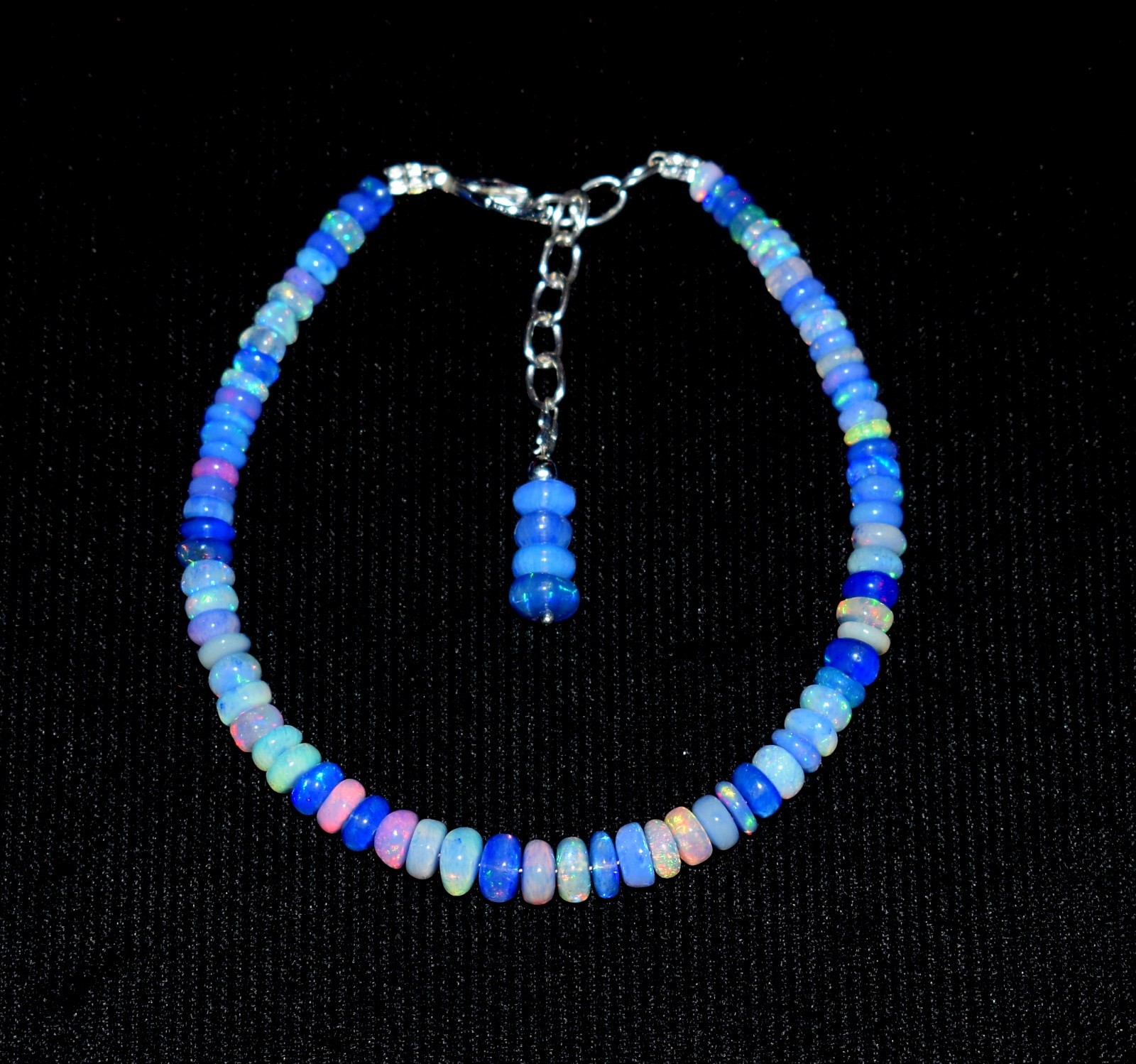 Natural Ethiopian Wello Fire Opal Gemstone Fire Beads 7.5Bracelet N0437