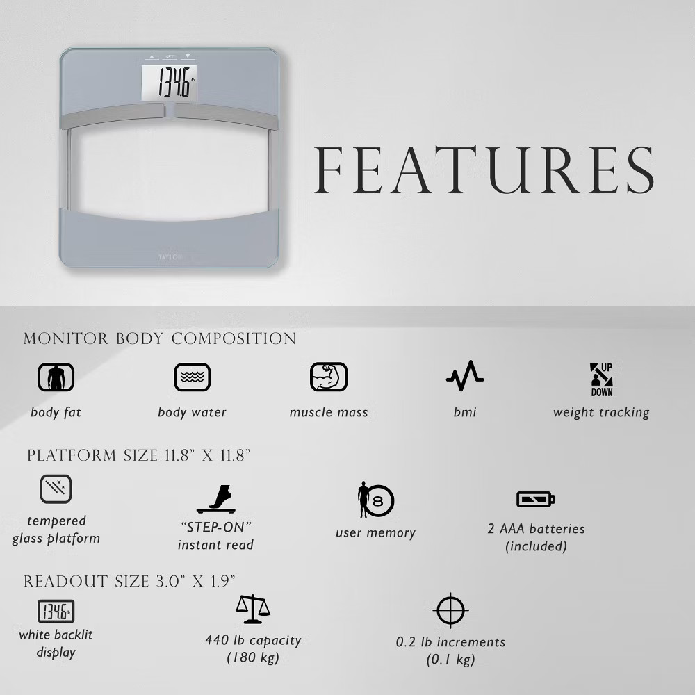 Glass Body Composition Personal Scale Gray/Clear - Taylor
