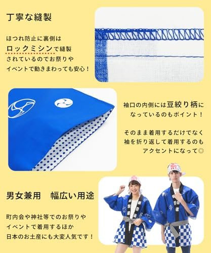как выглядит Matsuri Happi Coat 3pcs Set Japanese Festival Kimono Jacket M Unisex Blue Cotton фото