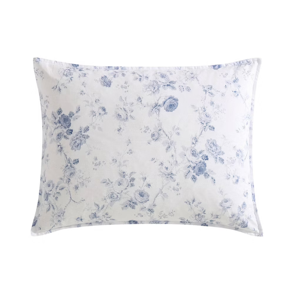 Laura Ashley Comforter Set Cotton Blue Floral Stripe Cruelty-Free, Blue, TwinXL