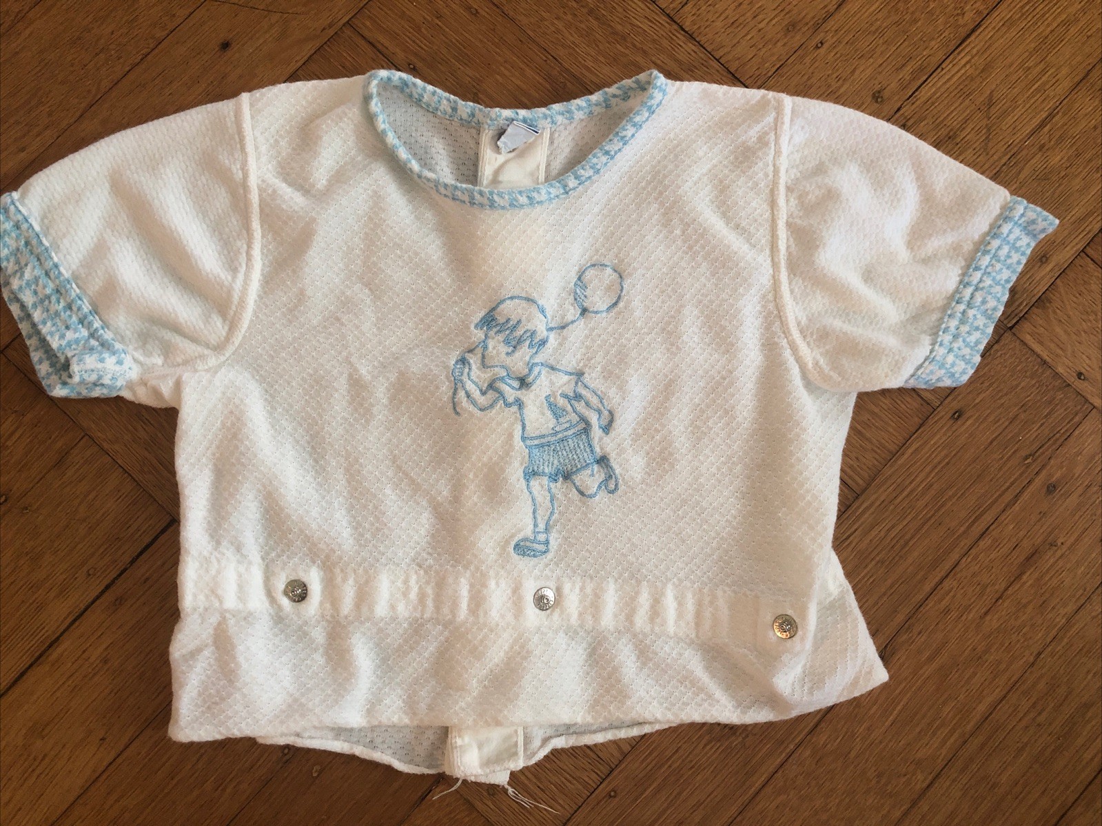 как выглядит VTG 60s Carter s Pajamas Size 3 Yrs Snap 2Pc Blue White Boy Balloon 100 Cotton фото