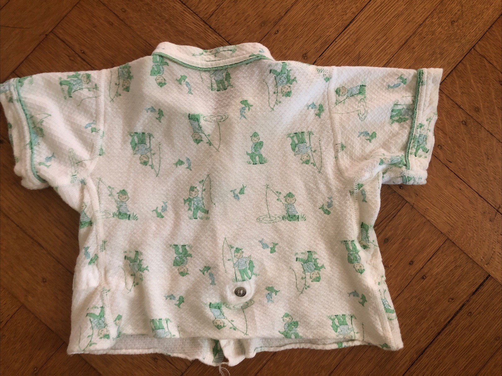 как выглядит VTG 60s Carter s Pajamas Size 3 Yrs Snap 2Pc Green Blue White FISHING Cotton фото