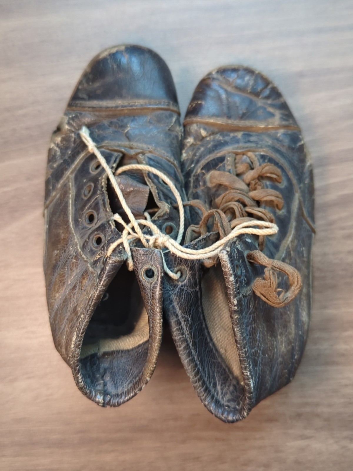 как выглядит Pair of vintage Antique leather baby or toddler shoes 1920s фото