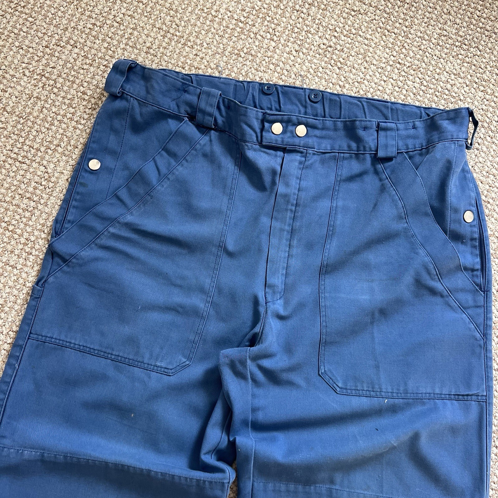 как выглядит Vintage French Faded Blue Worn Cotton Works Chore Distressed Canvas Pants фото