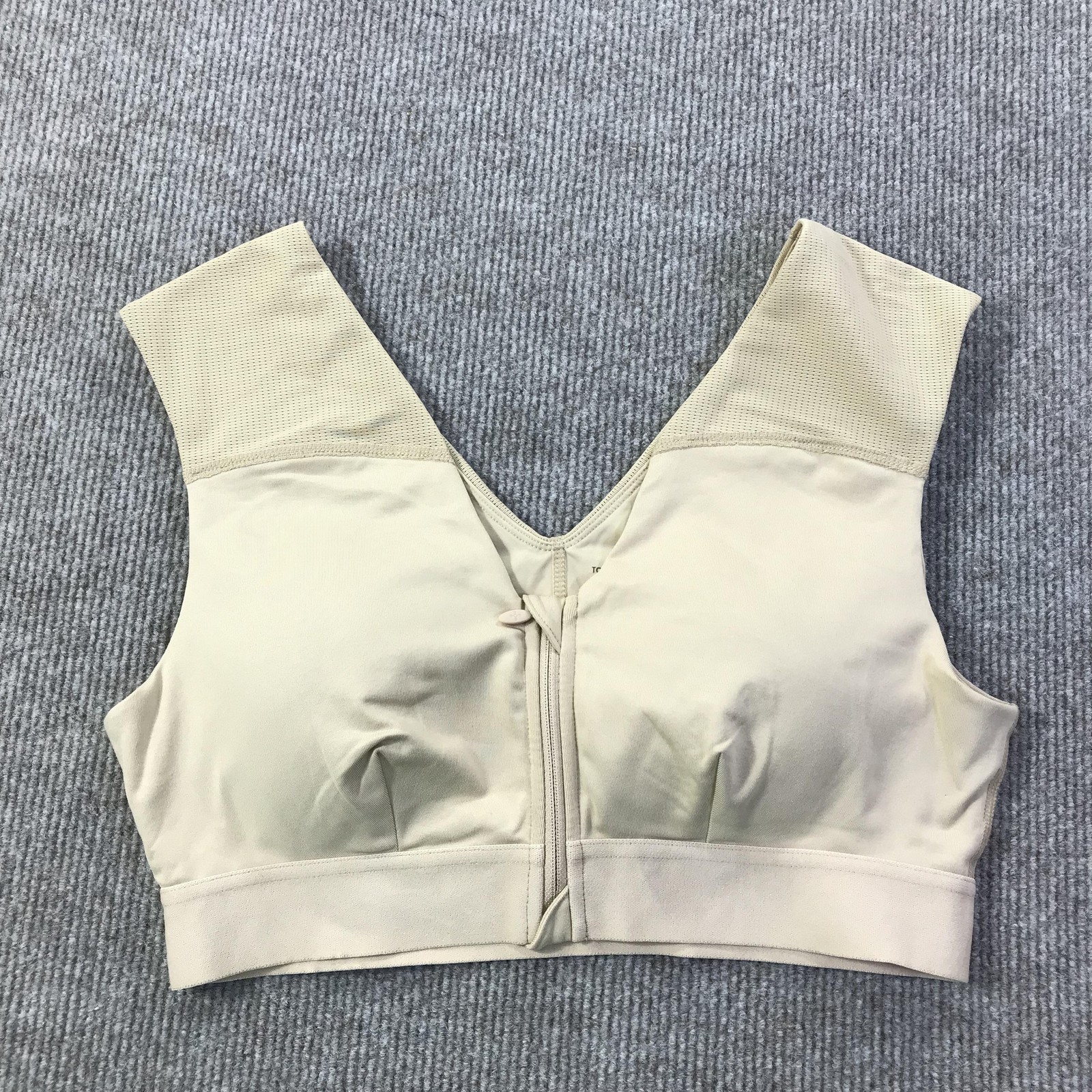 Tommie Copper Sports Bra Womens Large Beige Znergy Copper Zinc Infused Zip Front