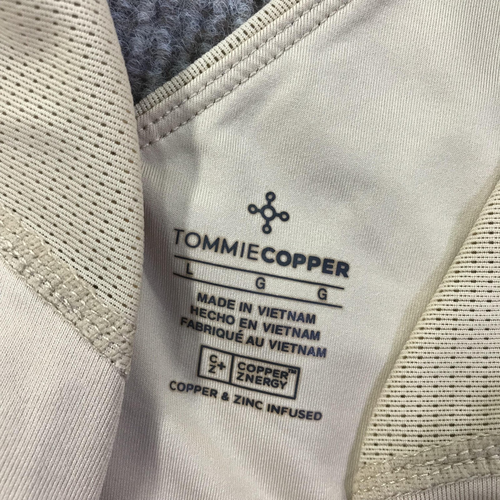 как выглядит Tommie Copper Sports Bra Womens Large Beige Znergy Copper Zinc Infused Zip Front фото