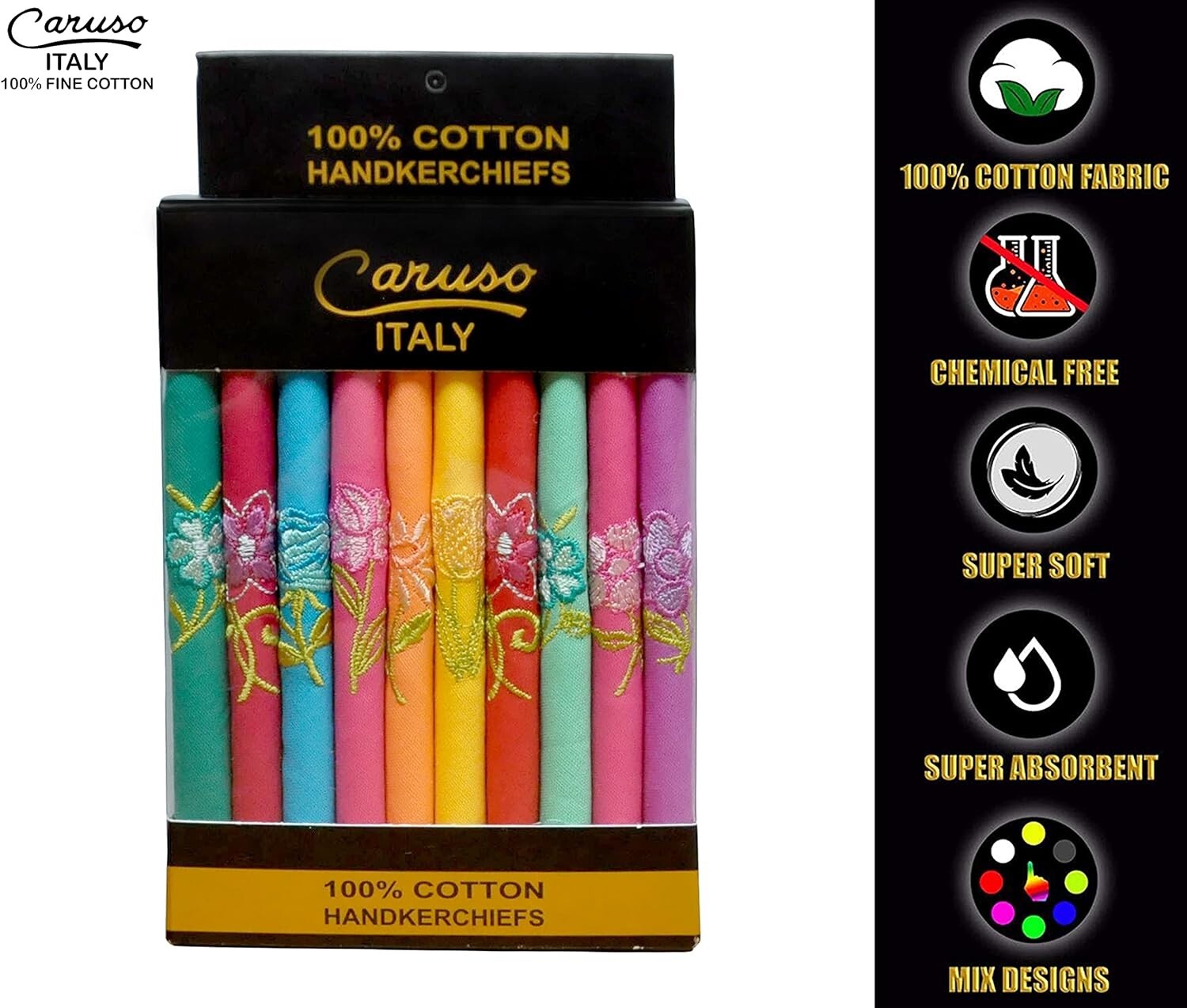Set of 10 Soft Embroidered Handkerchiefs - 100 Cotton for Everyday Elegance